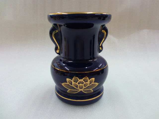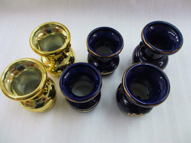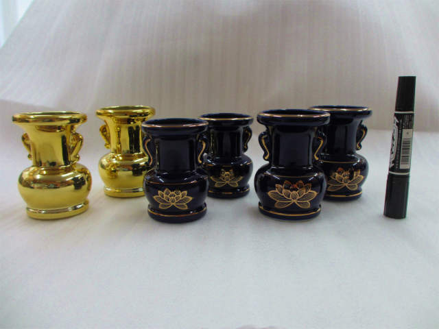 | 陶器製他 花立て 6点セット (金色 ハス/紺) 長期在庫品の為、傷、変色あります k071 | |||