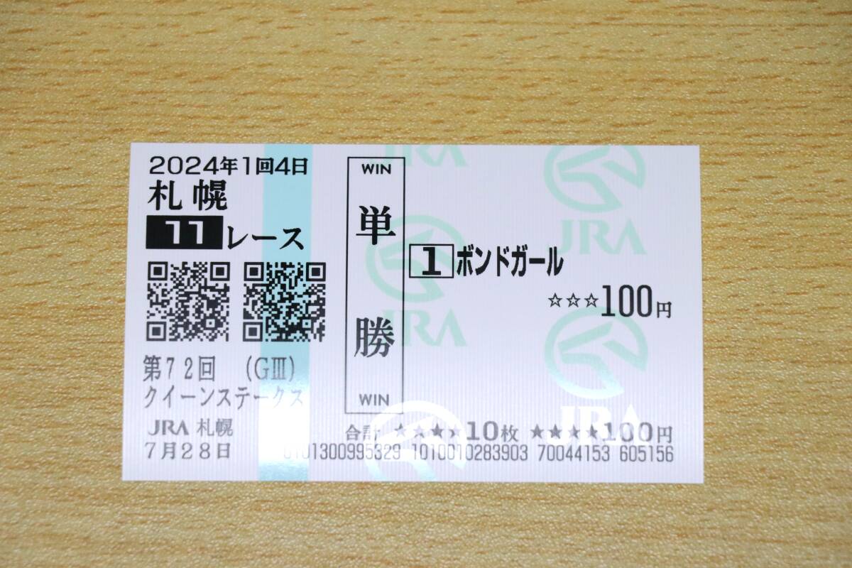 ボンドガール 札幌11R クイーンステークス (2024年7/28) 現地単勝馬券(札幌競馬場)です。気に入って頂けた方の落札を心よりお待ちしております。