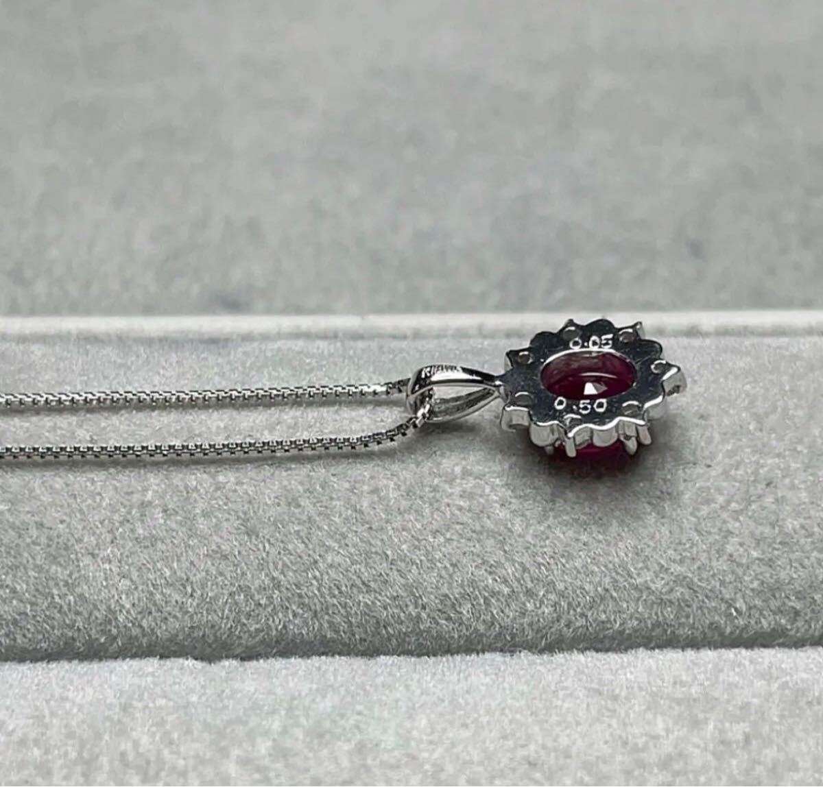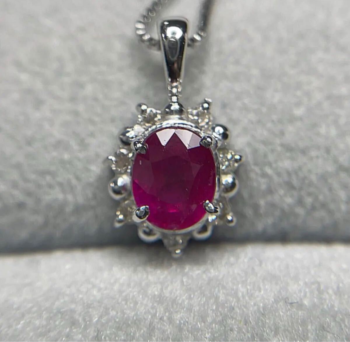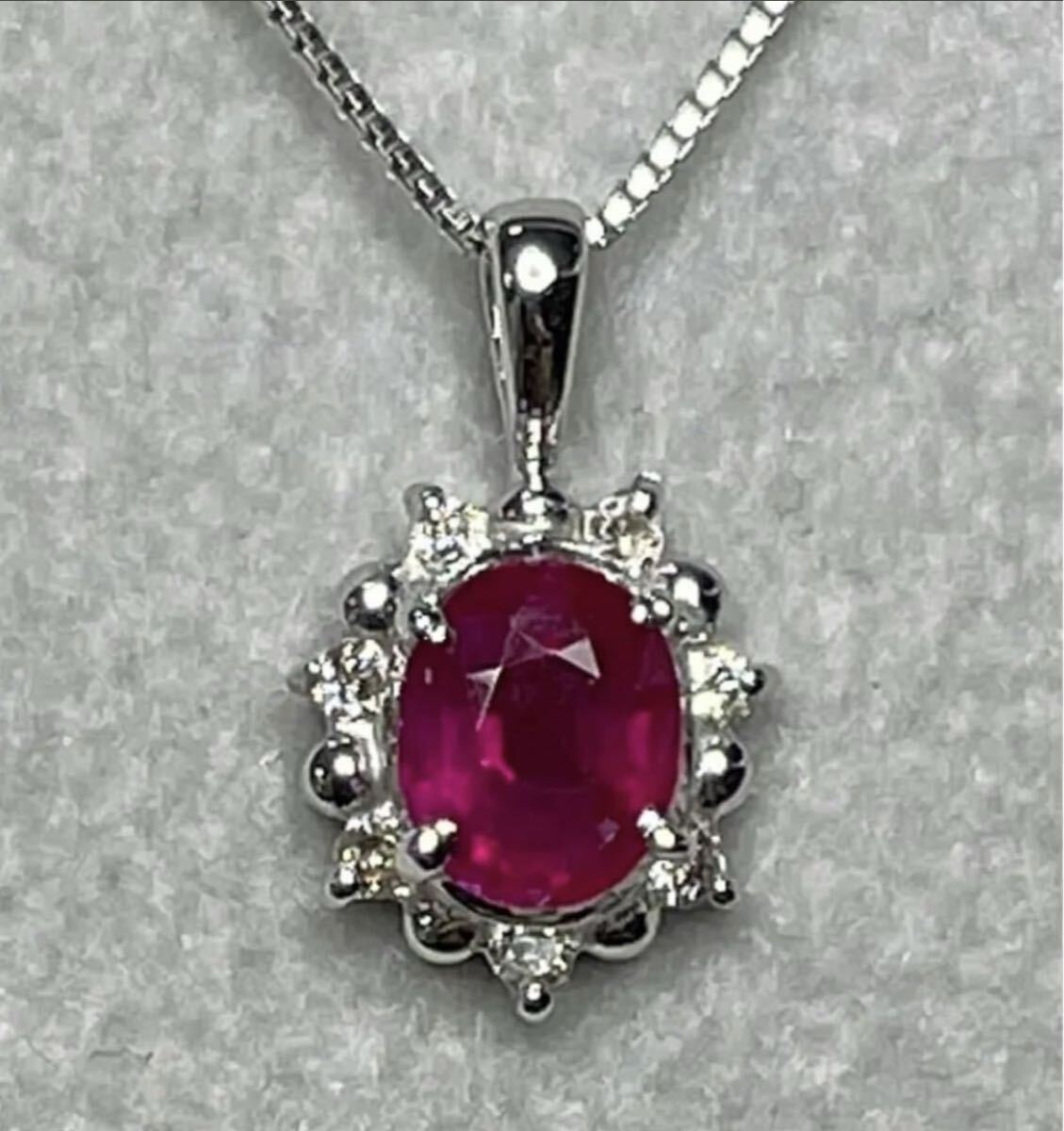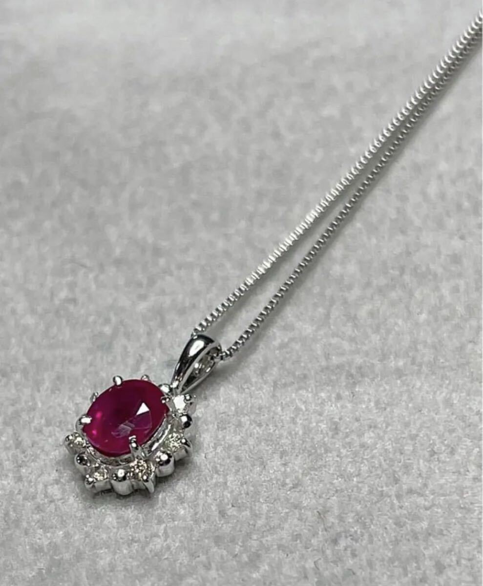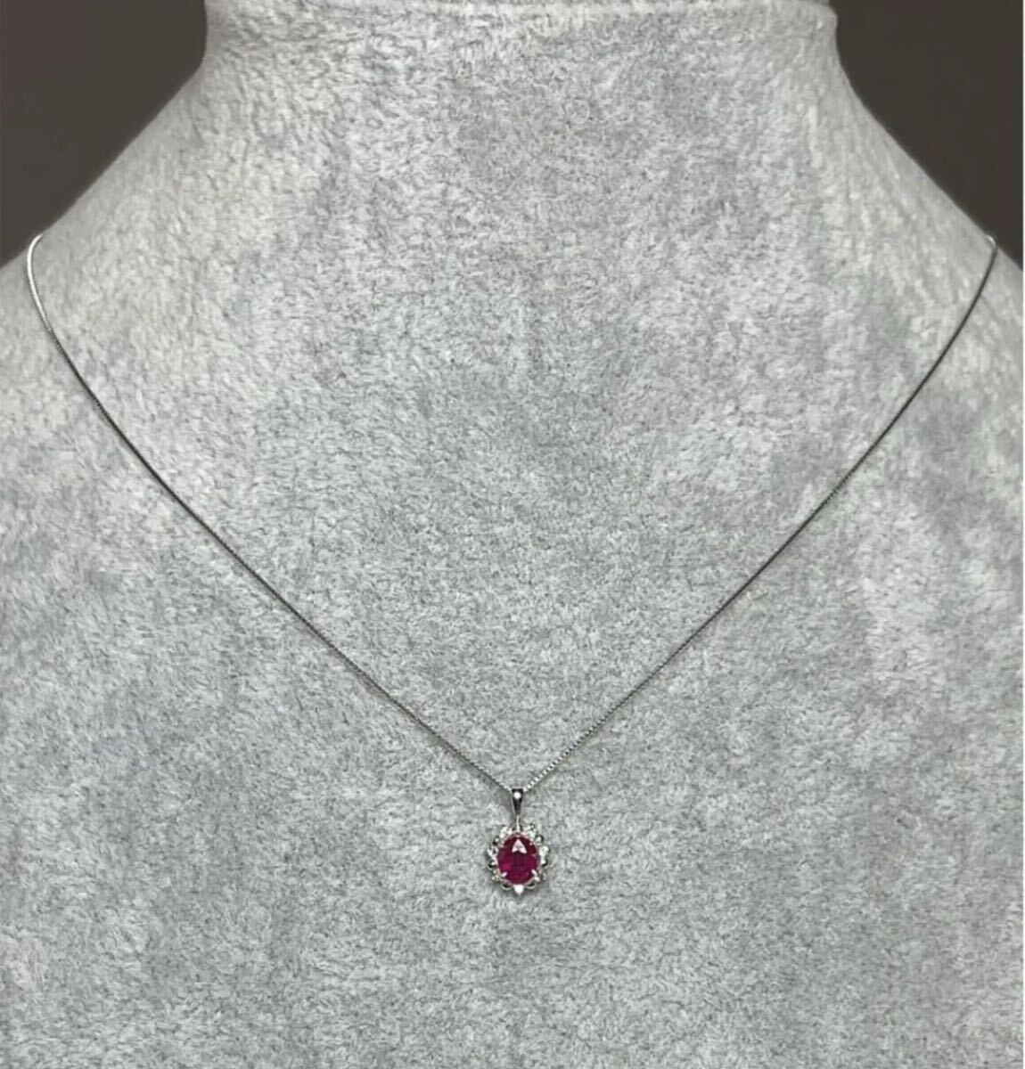 高級ジュエリー 天然ルビー0.50ct ダイヤモンド 0.05ct K18WG ペンダント ベネチアンチェン40cm ネックレスセットjewelry 高品質 刻印有