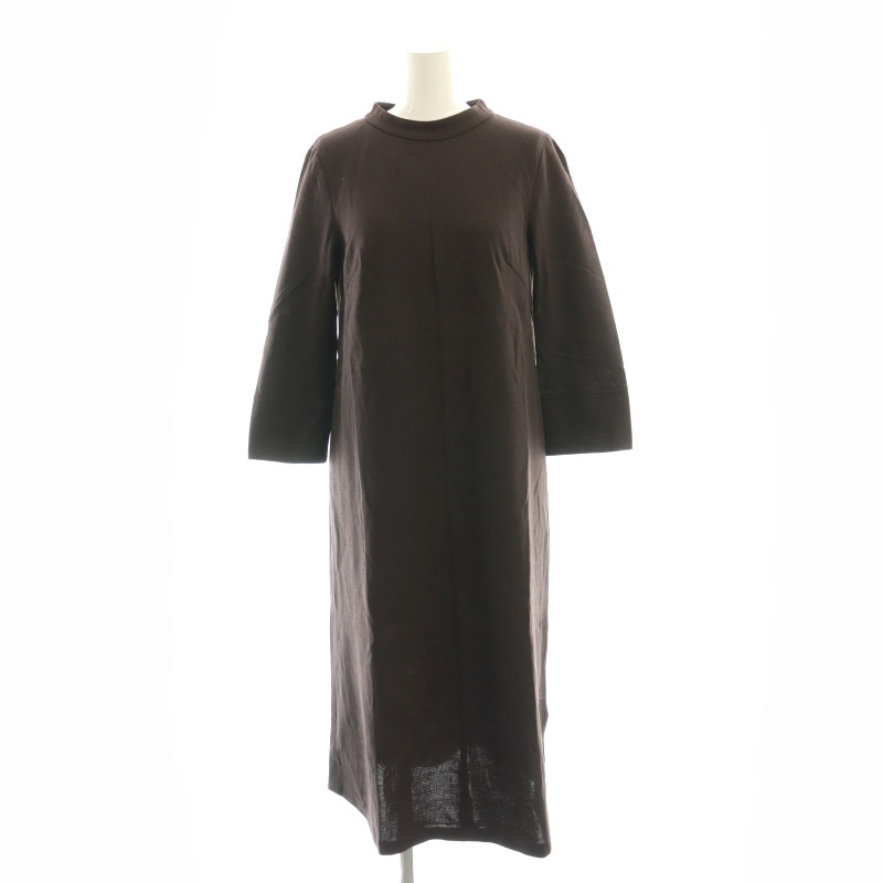 アンタイトル UNTITLED ハイネック Iラインワンピース ミモレ ロング 七分袖 2 茶 ブラウン /AT ■OS レディース
