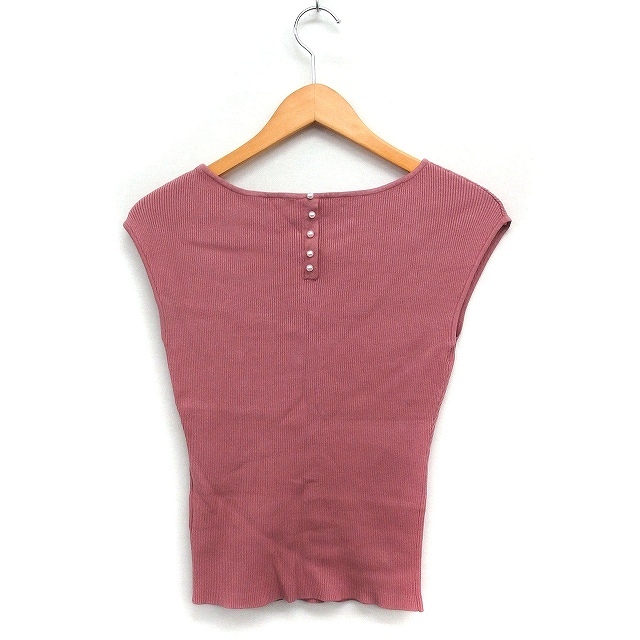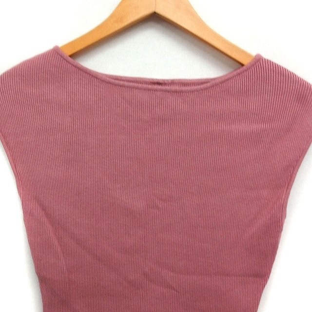 ジャスグリッティー JUSGLITTY リブ ニット カットソー ボートネック フレンチスリーブ 無地 2 ピンク /FT24 レディース