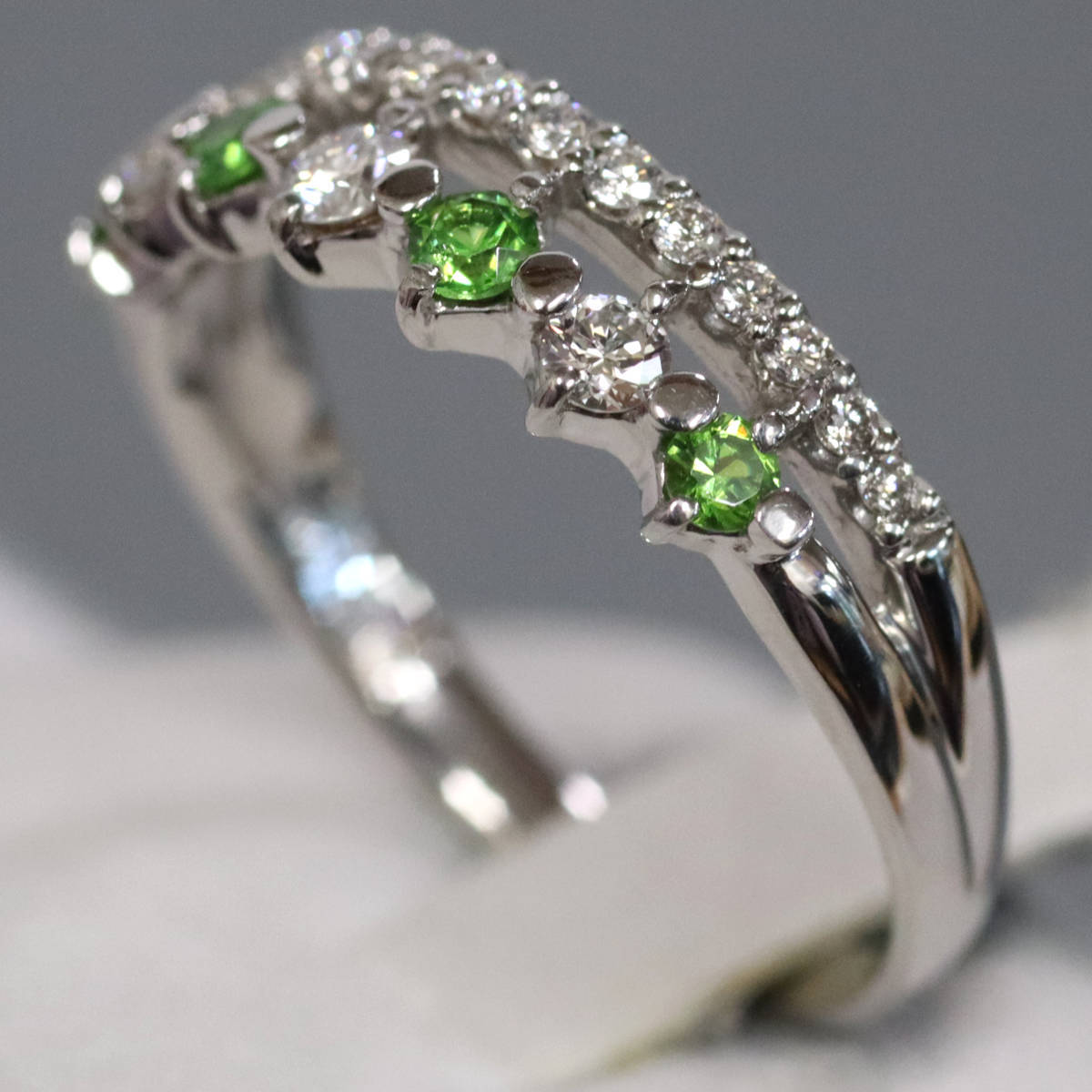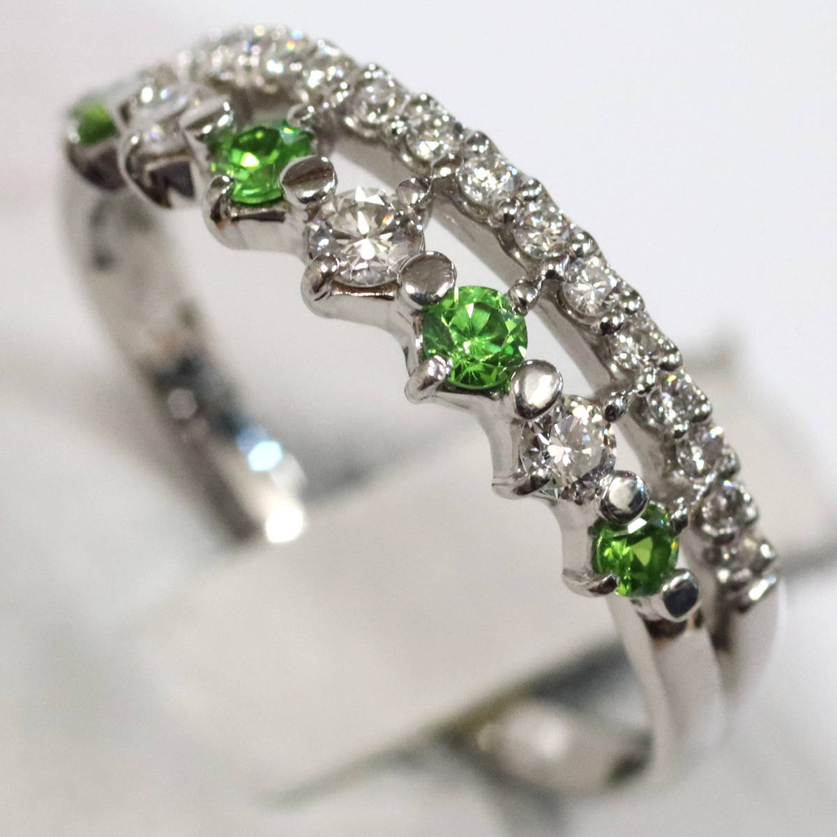 | ■ Pt900デマントイドガーネットダイヤモンドリング G0.180 D0.25 3.5g #13 ■ | ||||||||||||||||||||||||||