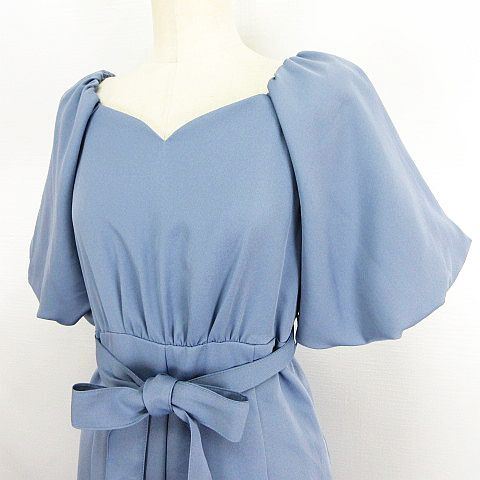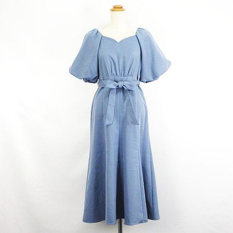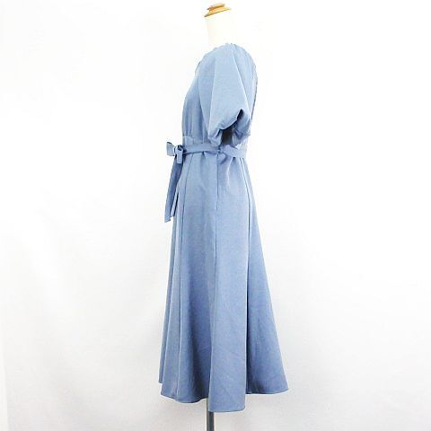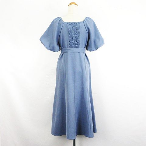 ミッシュマッシュ ワンピース 五分袖 パフスリーブ ロング丈 バックシャーリング M グレイッシュブルー ※EKM レディース