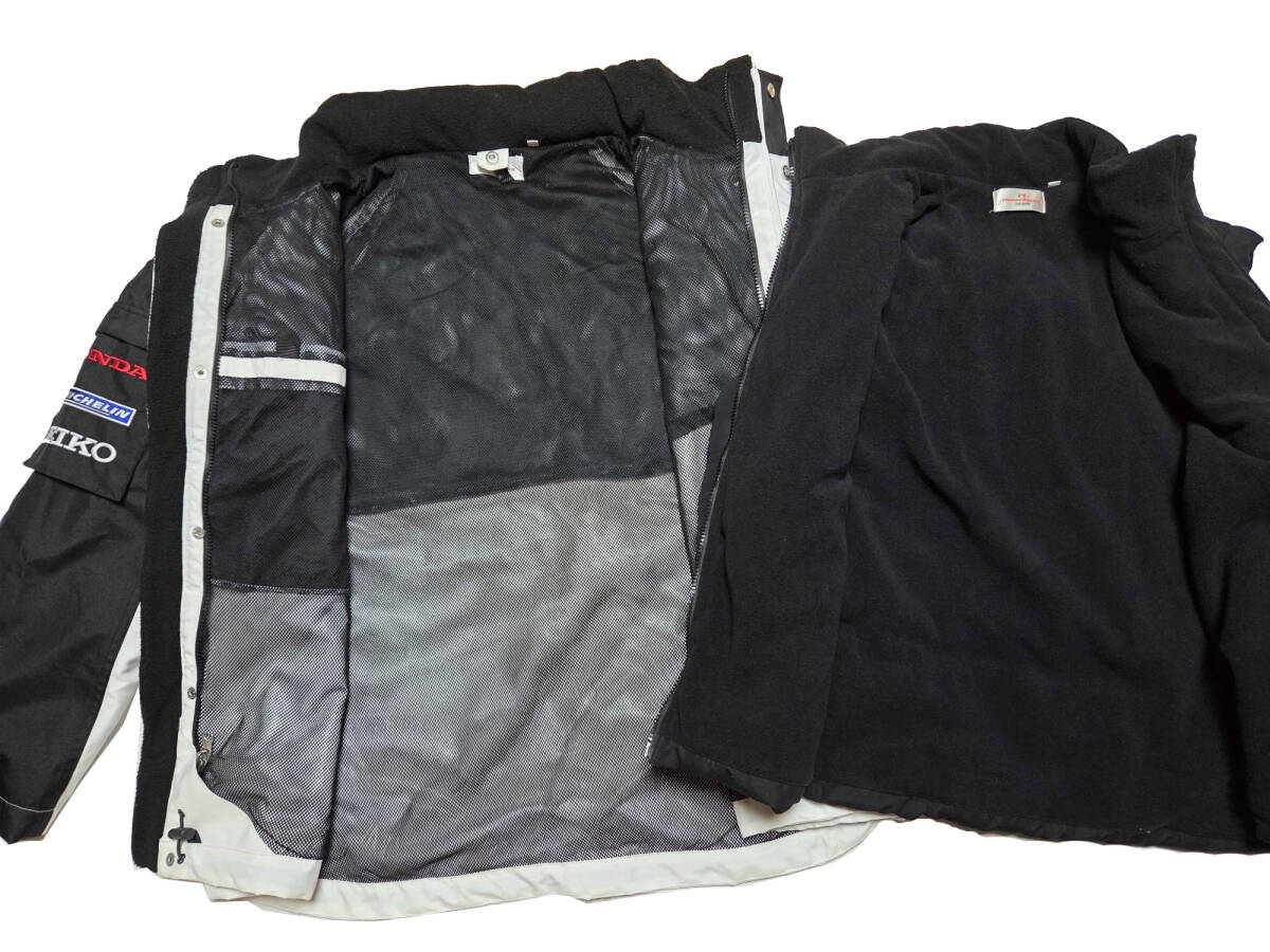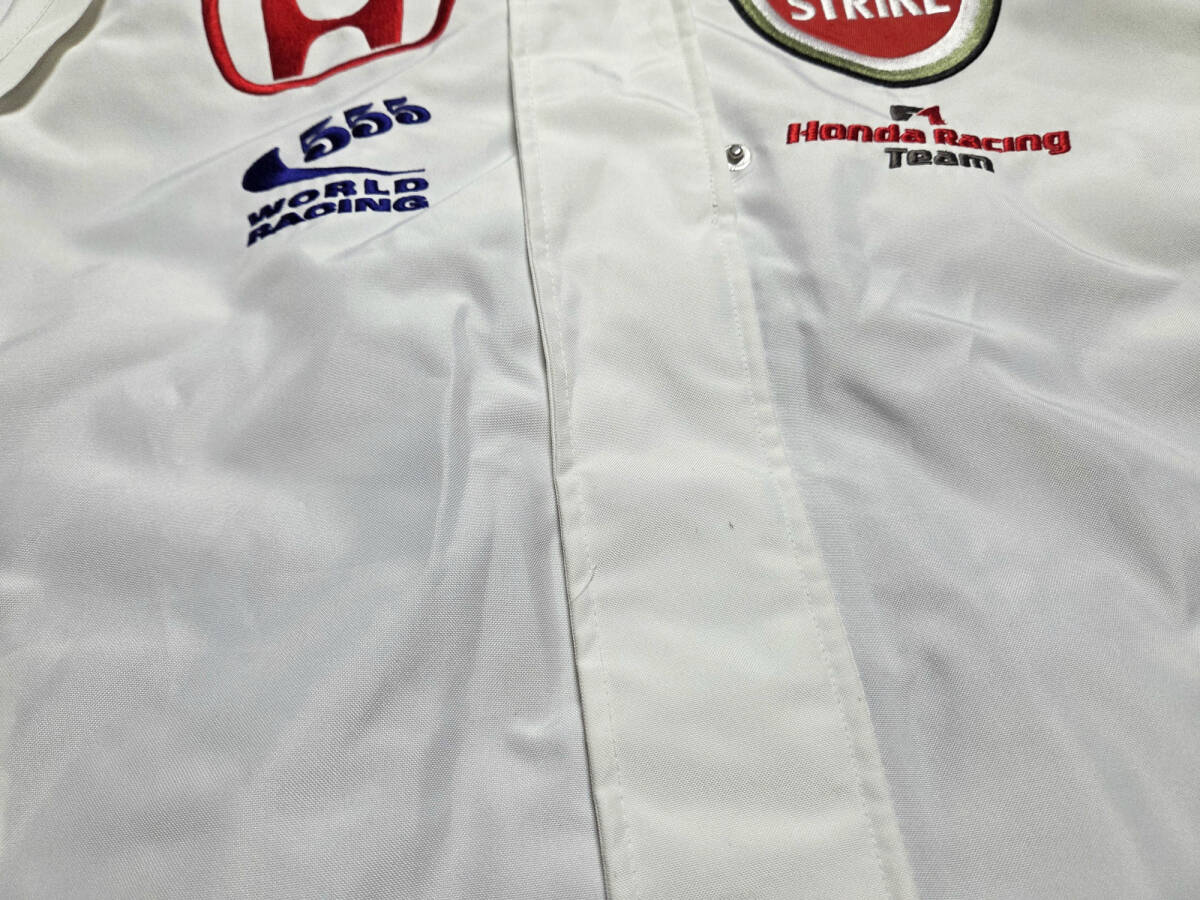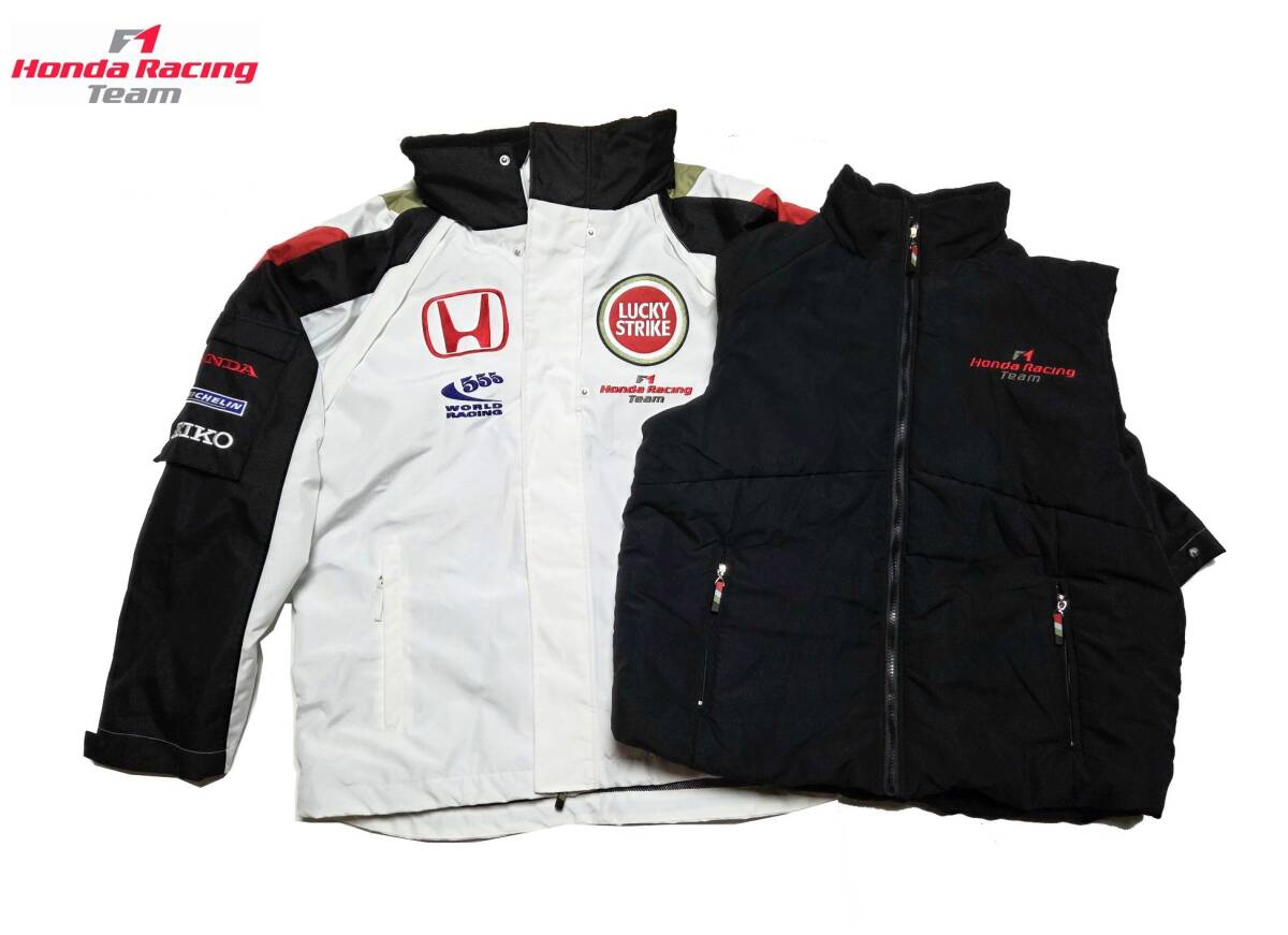 【商品の説明】 ホンダF1の2006支給品3wayヘビージャケットです。 インナーのベストは着脱可能で、ジャケットとベストそれぞれ単品として着用ができます。 こちらのジャケットはラッキーストライク仕様とレーシングレボリューション仕様にロゴが切り替え可能です。 ロゴの切り替えが可能な場所は全部で5箇所。 ・左胸:LS/RR ・右胸555ロゴの有無 ・両袖のSEIKOロゴ有無 ・背中:LS/RR 年間を通しての使用を想定されたロゴ切り替え式ジャケットは支給数も極少数になります。 当時も非常に珍しい存在でしたが、20年近く経過した現在では見掛ける事はほぼ皆無となっております。 状態:USED 小さい汚れはございますが、目立つような大きい汚れはございません。使用感自体も少なめで着用には全く問題の無いコンディションです。 表記サイズ・実寸:M ジャケット 身幅 63cm 着丈 73cm ベスト 身幅 60cm 着丈 65cm 注意事項:チームスタッフ専用に作られた支給品になり、一般販売される市販品のレプリカウェア等とは保管方法等が異なります。 状態を細かく気にされる方は入札をお控えください。 落札後はノークレームノーリターンでお願いします。 |