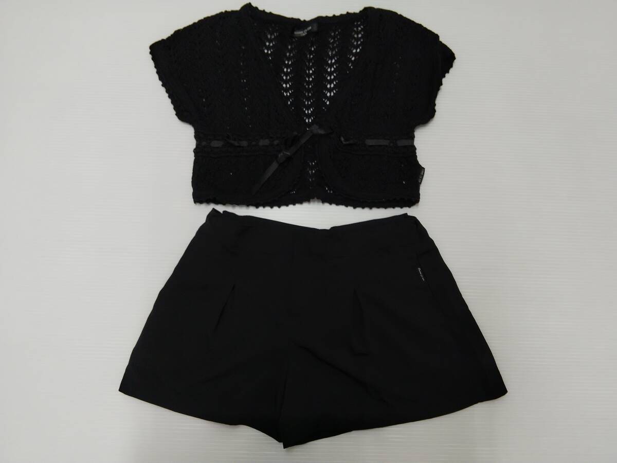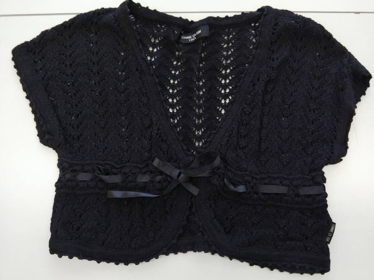 コムサイズム 透かし編み 半袖カーディガン V首&短パン 黒 子供服 130 上下セット
