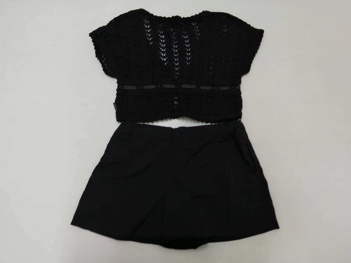 「コムサイズム」透かし編み 半袖カーディガン V首&短パン 黒 子供服 130 上下セットです。