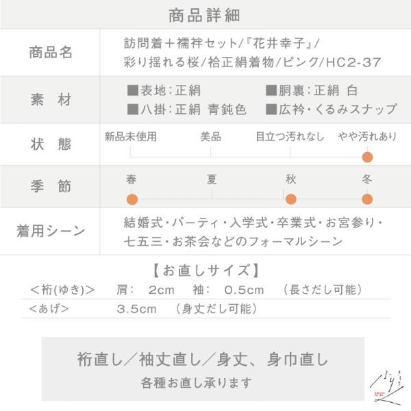 【訪問着+襦袢セット】 『花井幸子』 彩り揺れる桜 ピンク 袷正絹着物 HC2-37