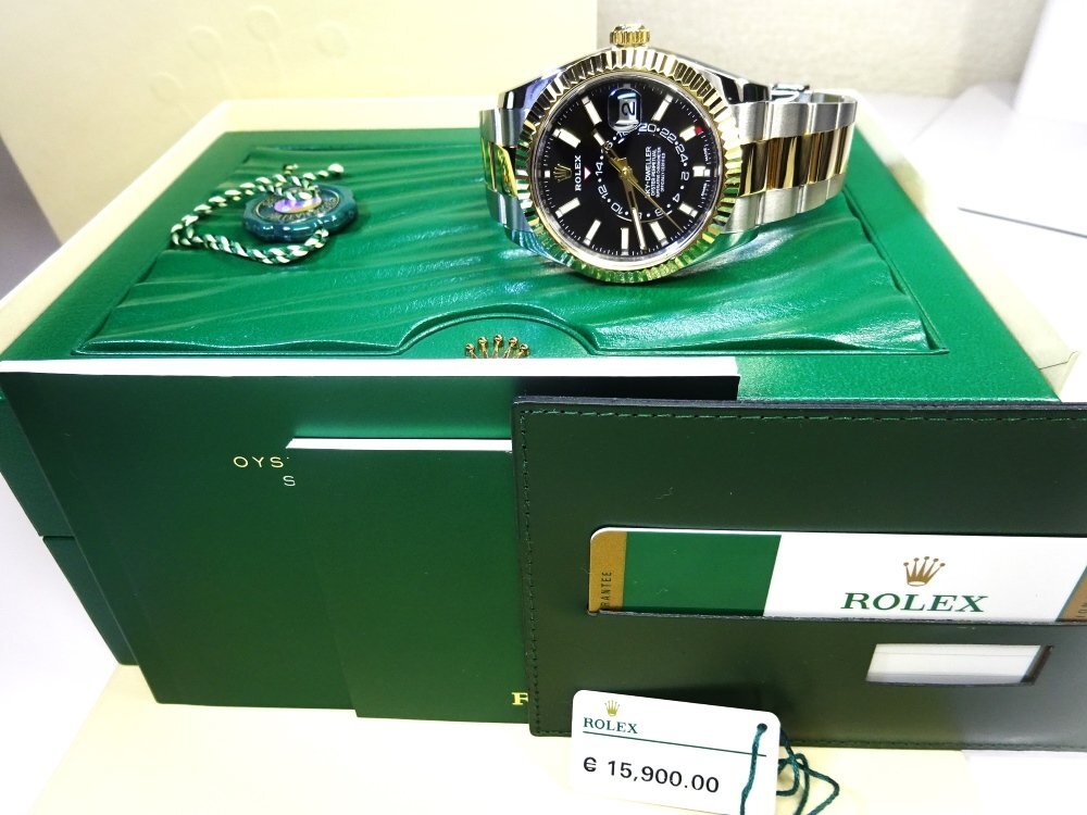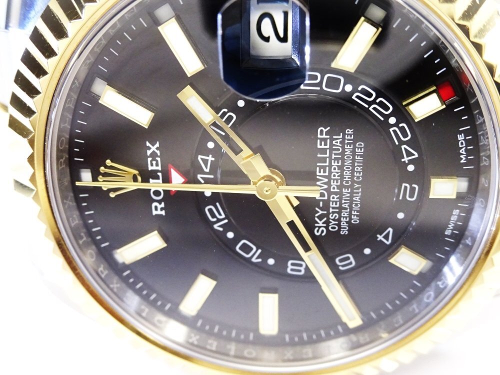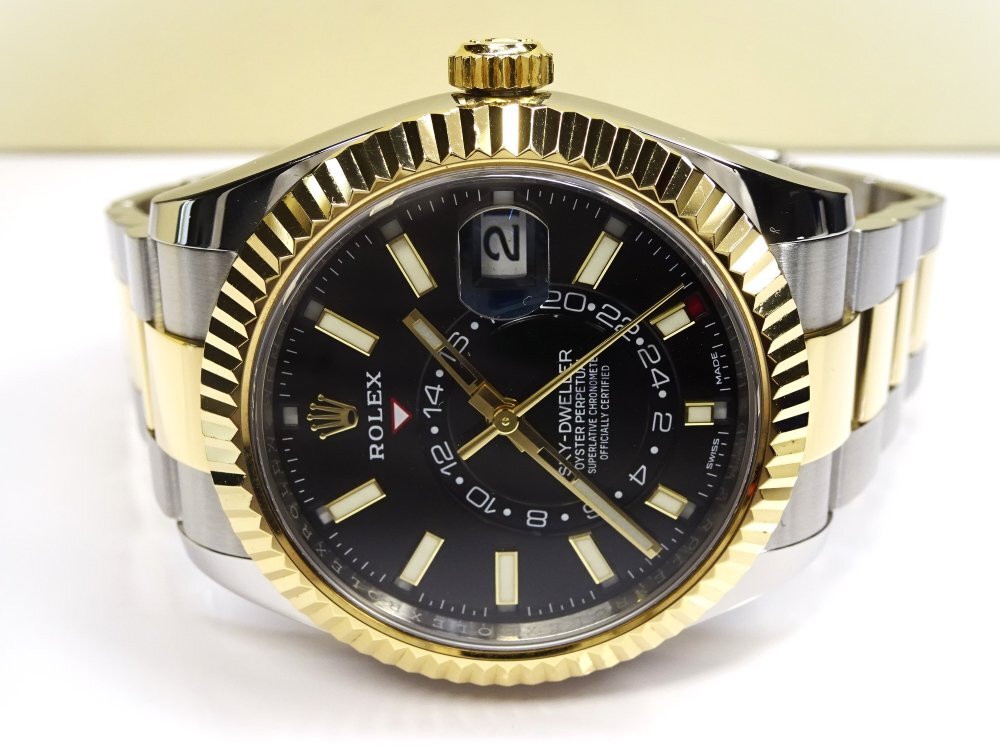5561超極上 ロレックス・スカイドゥエラー SS×YG ・326933 黒文字盤・フルコマ ランダム品番・軽磨き済が入荷しました。