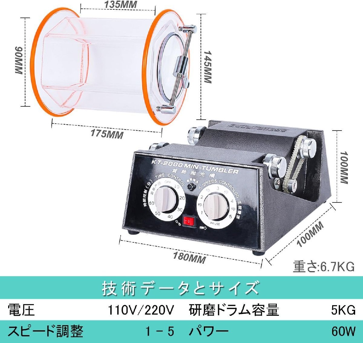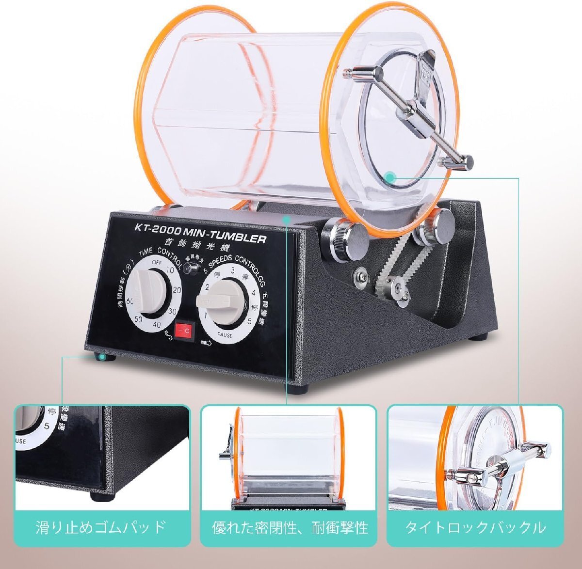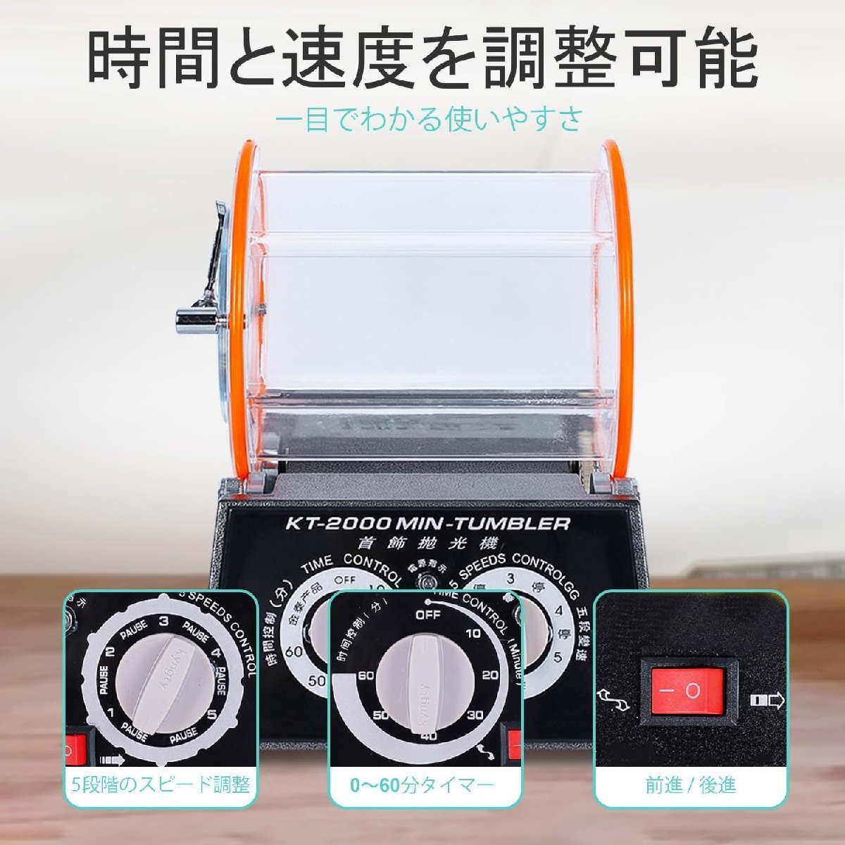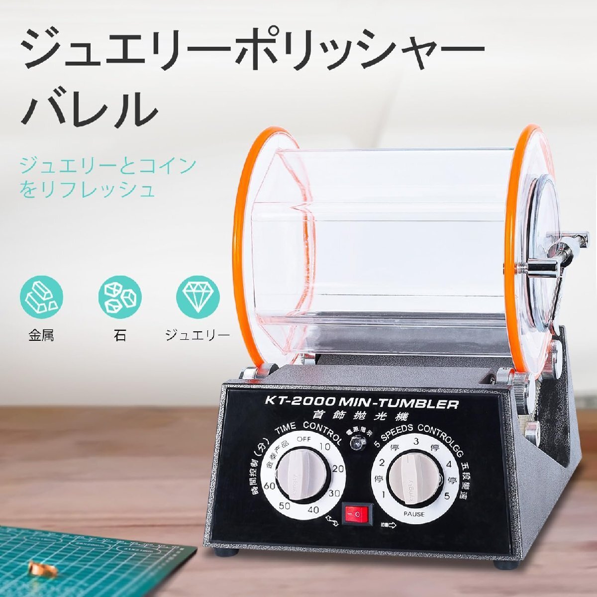 バレル研磨機 ジュエリー研磨機 時間制御付き 5段階回転速度調整 タイマー機能付 研磨ボール付属 アクセサリー 小物 天然石 パーツ研磨