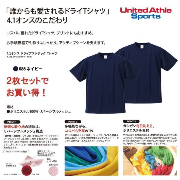 【2枚 セット】ユナイテッドアスレ 4.1oz ドライアスレチック 半袖 Tシャツ ネイビー 紺 S 無地 新品未使用 吸汗 スポーツ ヨガ 速乾