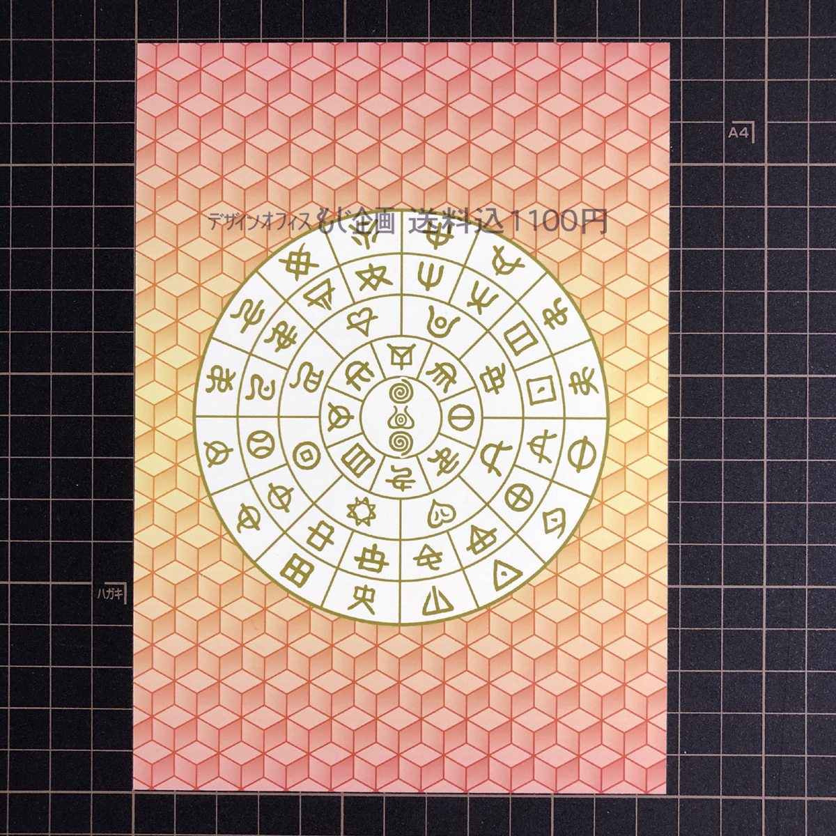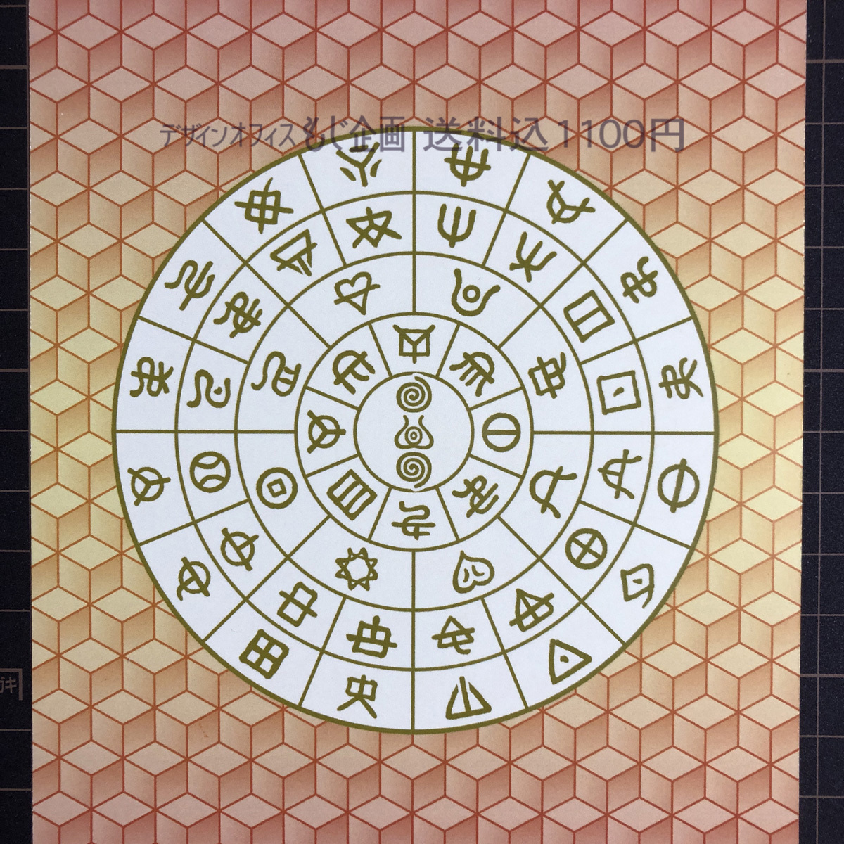 丁寧に手書きした古代文字、ヲシテ文字のフトマニ図をトレースして、プリントしたものになります。