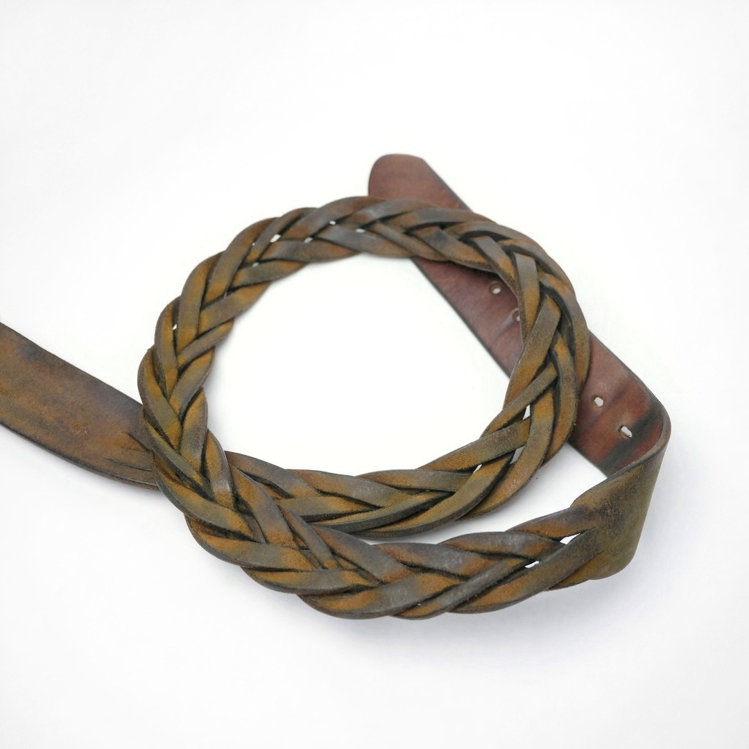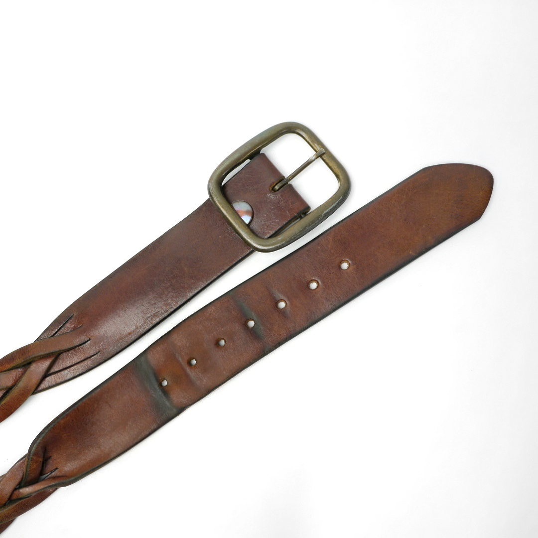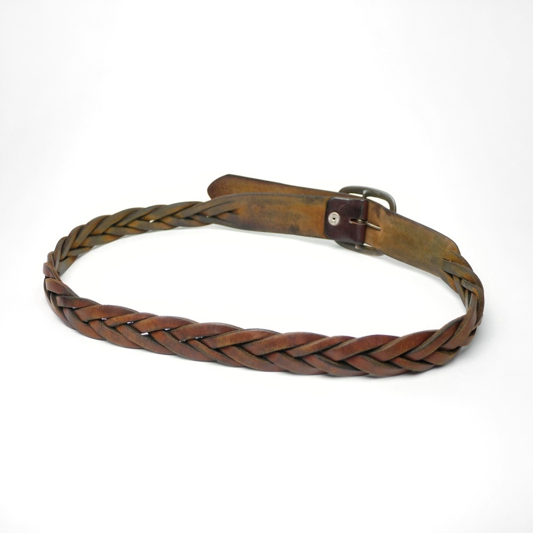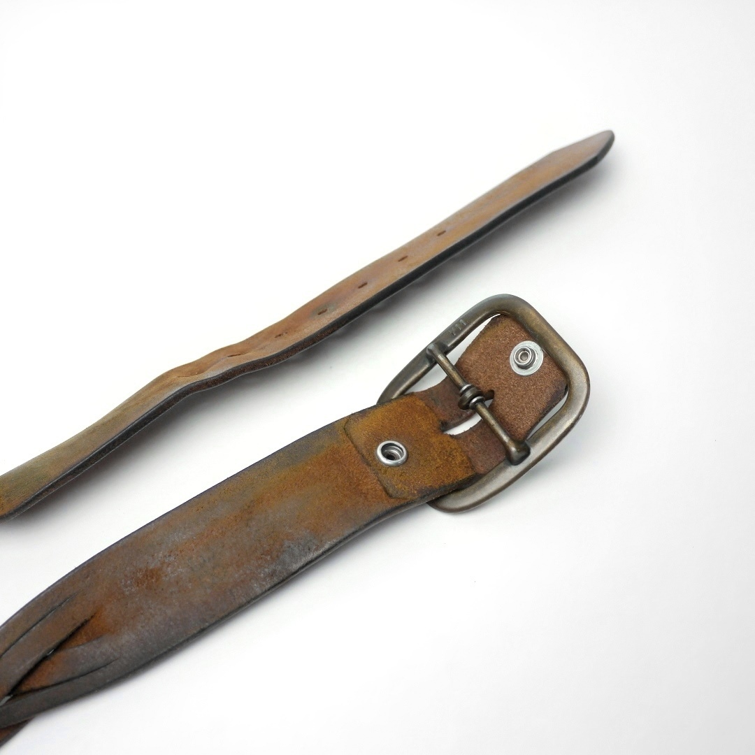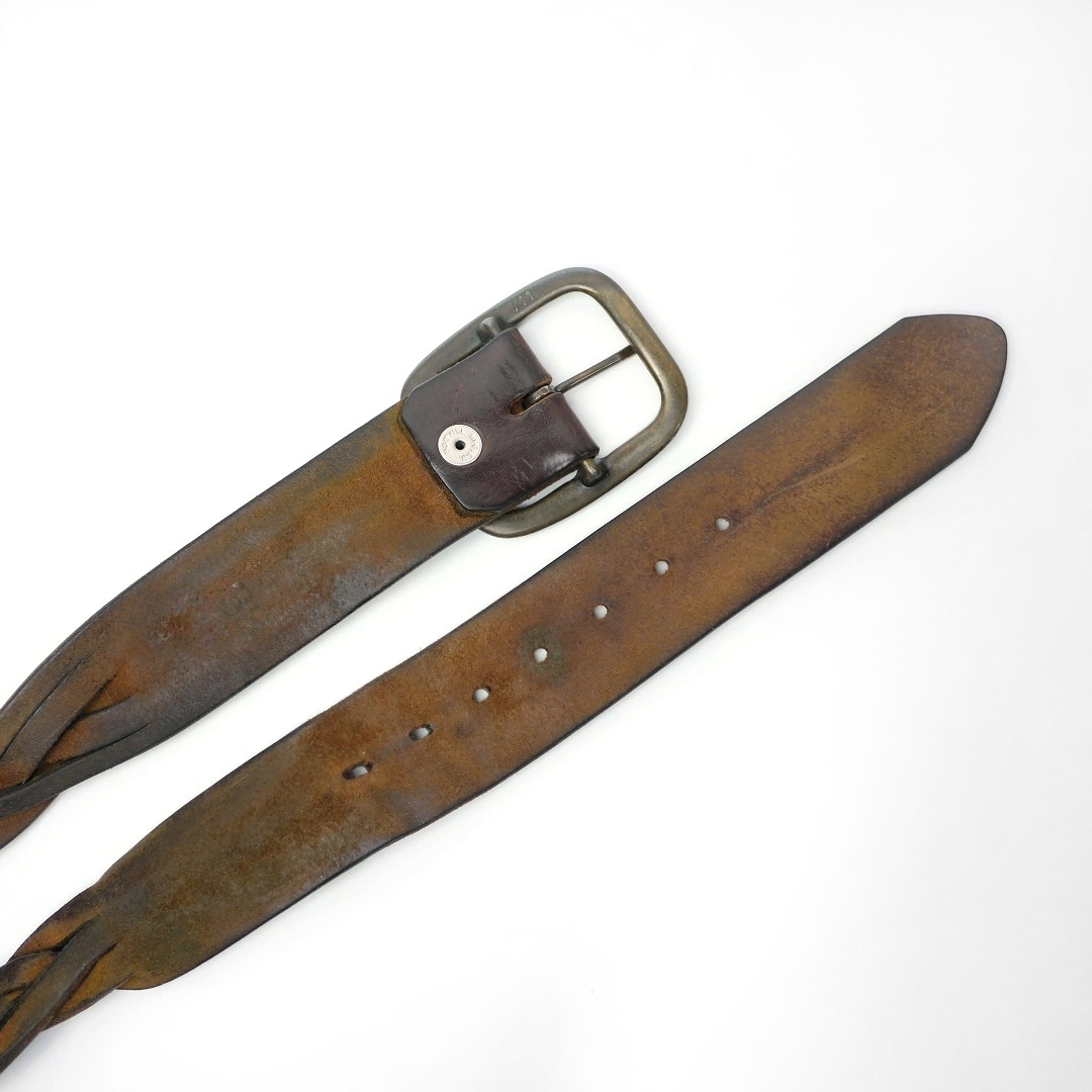 ■ブランド 70s、UNKNOWN、SCOVILL MFG CO、 ■カラー ブラウン/茶色 ■詳細 アメリカで購入したビンテージのレザーメッシュベルトです。 70年代ごろのアイテムでスナップボタンはスコービル、バックルは着脱可能、711刻印入りでメッキの合金になると思います。 肉厚な本革の編み込みで質感などは同年代のヒッピーバックのストラップをイメージしていただければ近いです。ヴィンテージレザーならではの表情に経年変化しており最高の雰囲気です。 ■状態 バックル&スナップのメッキにスレハゲ、レザーにスレキズ、ケズレ、シワヒビ、テカリ(黒ずみ)、薄汚れ、色濃淡、多少の革臭あり。 他、おそらくベルトホール追加済み、メッシュフチ&ベルトホール付近に多少のクセあとあり。着用に問題あるダメージはなく良好です。 ■サイズ 表記 W38 (実寸W38.5-W42.5 *下記参考下さい) 内周 98cm-108cm 実寸 総全長120m×本体117cm×横幅3cm-4cm×厚み0.4cm バックルサイズは 6.2cm×7cm、ベルトホールは6穴の1.5cm間隔になります。 ■注意事項 状態は細かく確認しておりますが、傷や汚れの見落とし、実寸誤差、色味差異など生じる場合がございます。 不明な点がありましたら入札前にご質問下さい。 商品にあわせて洗濯やクリーニングメンテナンスを施しておりますが、ビンテージやアンティークなど中古品になりますので特性のご理解をお願いします。 |