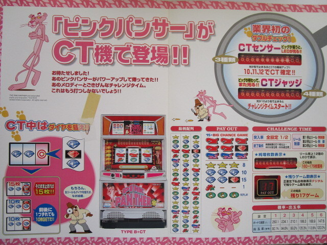 ※※ ピンクパンサー3 YAMASA/山佐 SLOT【パチスロ実機/パンフレット/チラシ】1-3 レトロ 懐かしの名機 テープ跡あり