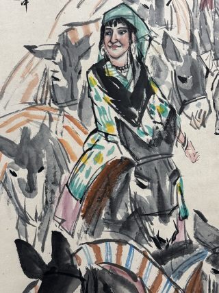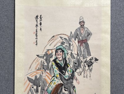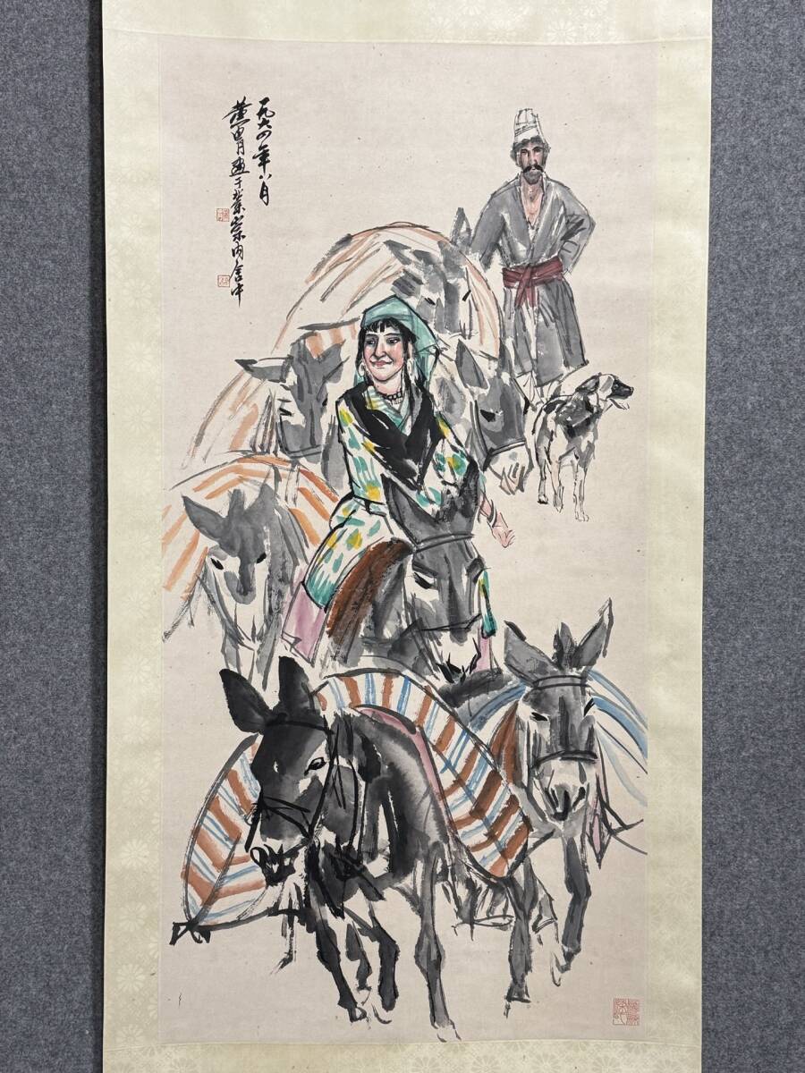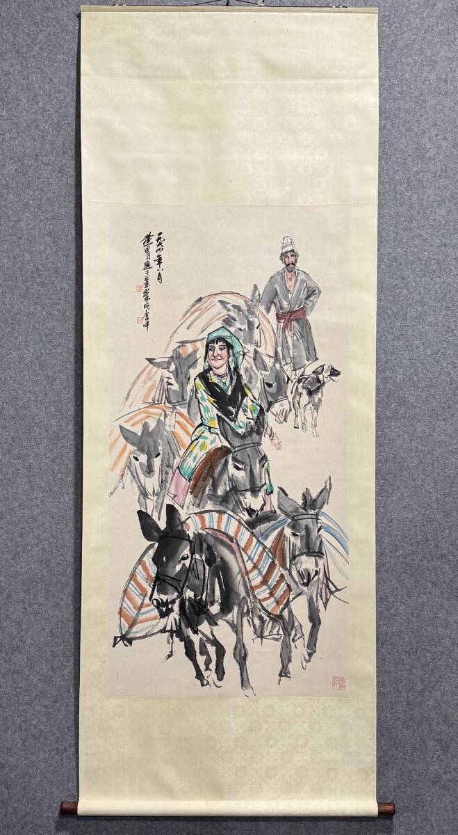 『三希堂』 中国画 古美術 [黄胄人物図] 掛け軸 真筆逸品 肉筆保証 中心尺寸137.5X67.5cm ABC505