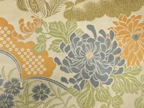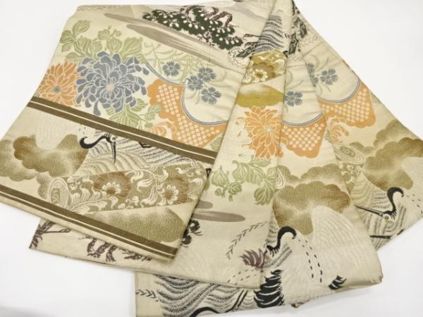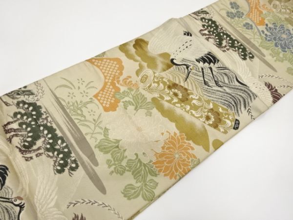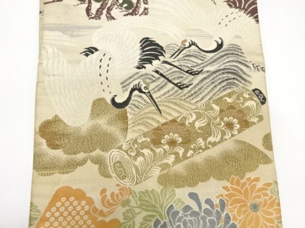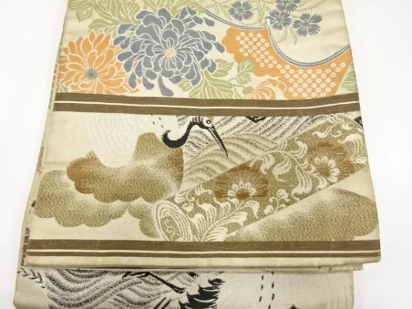 ys7394833; 蒔絵に鶴・菊・松模様織り出し丸帯(材料)【アンティーク】【着】