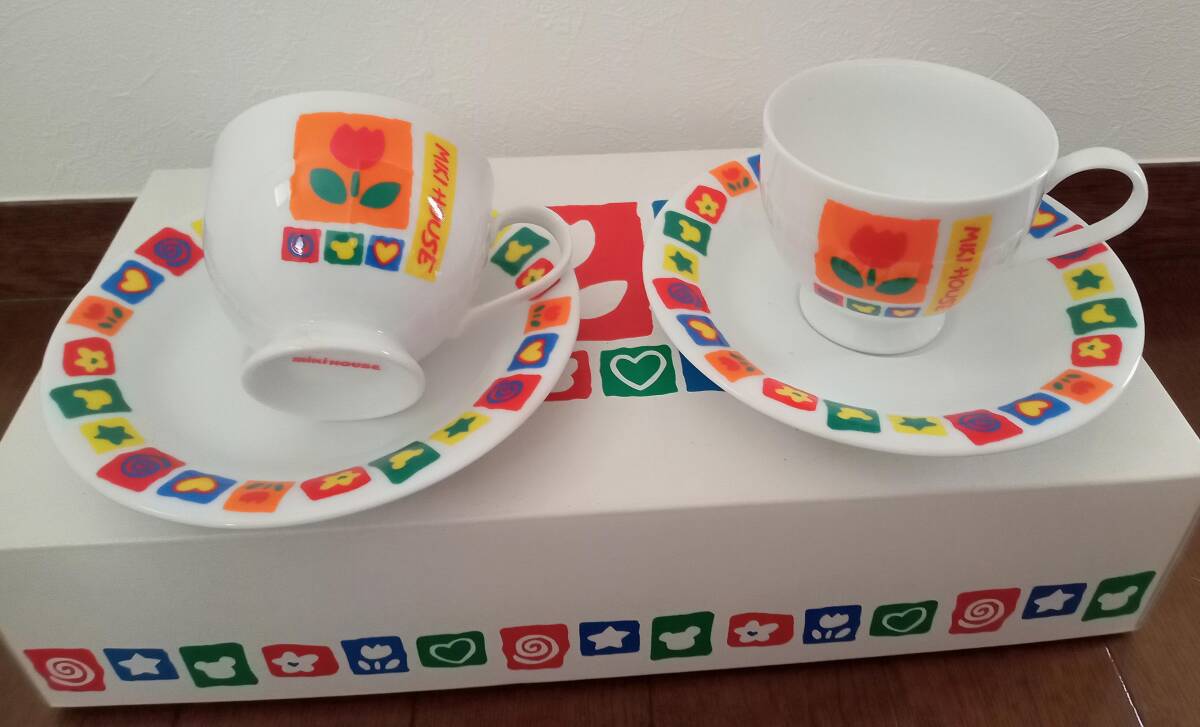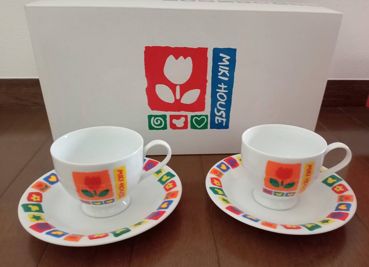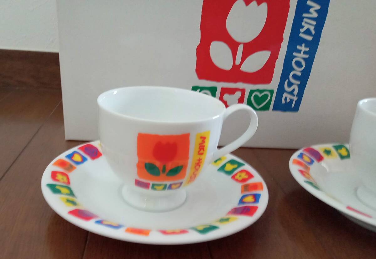 ミキハウス カップ&ソーサー 2客セット(ペアで) 可愛いチューリップ柄 花柄 色鮮やかなカップ&ソーサー