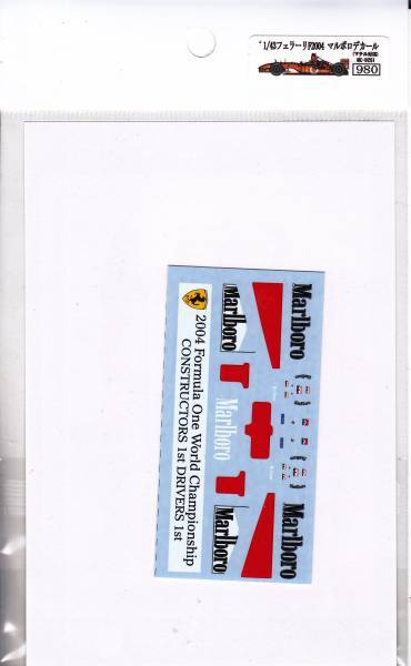 隔週刊F1マシンコレクション 1/43フェラーリF2004用マルボロデカール。デカールのみです。