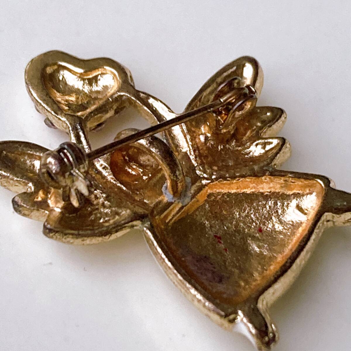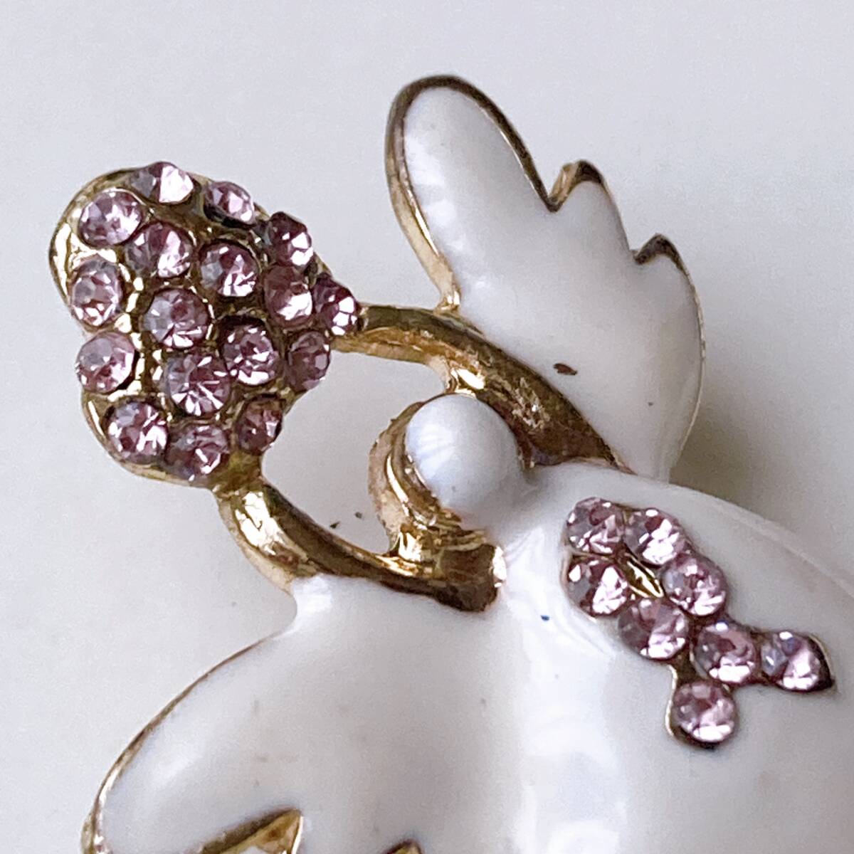 ヴィンテージブローチ 天使 ピンククリスタルストーン ピンクリボン キラキラ☆vintage jewelry accessoriesR0496