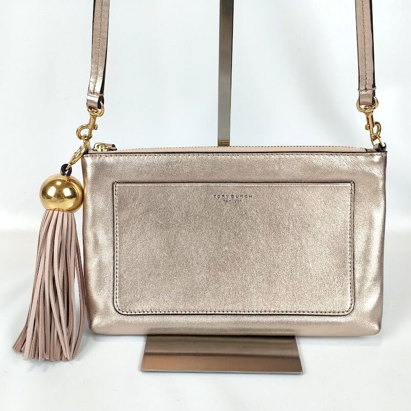TORY BURCH トリーバーチ ショルダーバッグ レザー タッセル クロスボディ ピンク系 光沢 ポーチ スマホショルダー ミニバッグ レディース