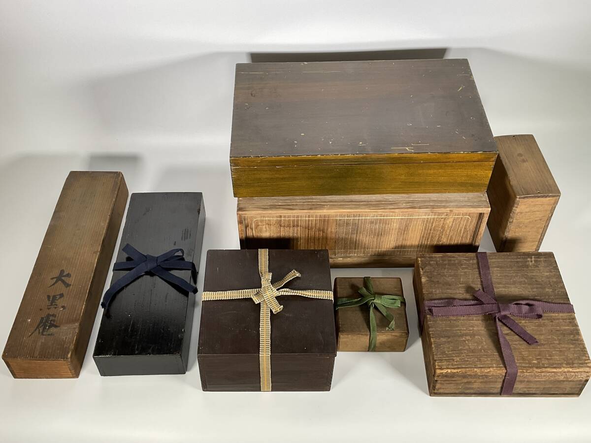 空き箱 まとめて8点 木箱 桐箱 文箱 茶碗・煎茶道具・盆栽鉢 古い箱