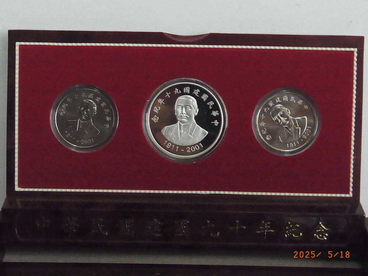 コレクションは中華民国建国の父、孫文肖像を刻印した建国90年記念の大型純銀貨と通常