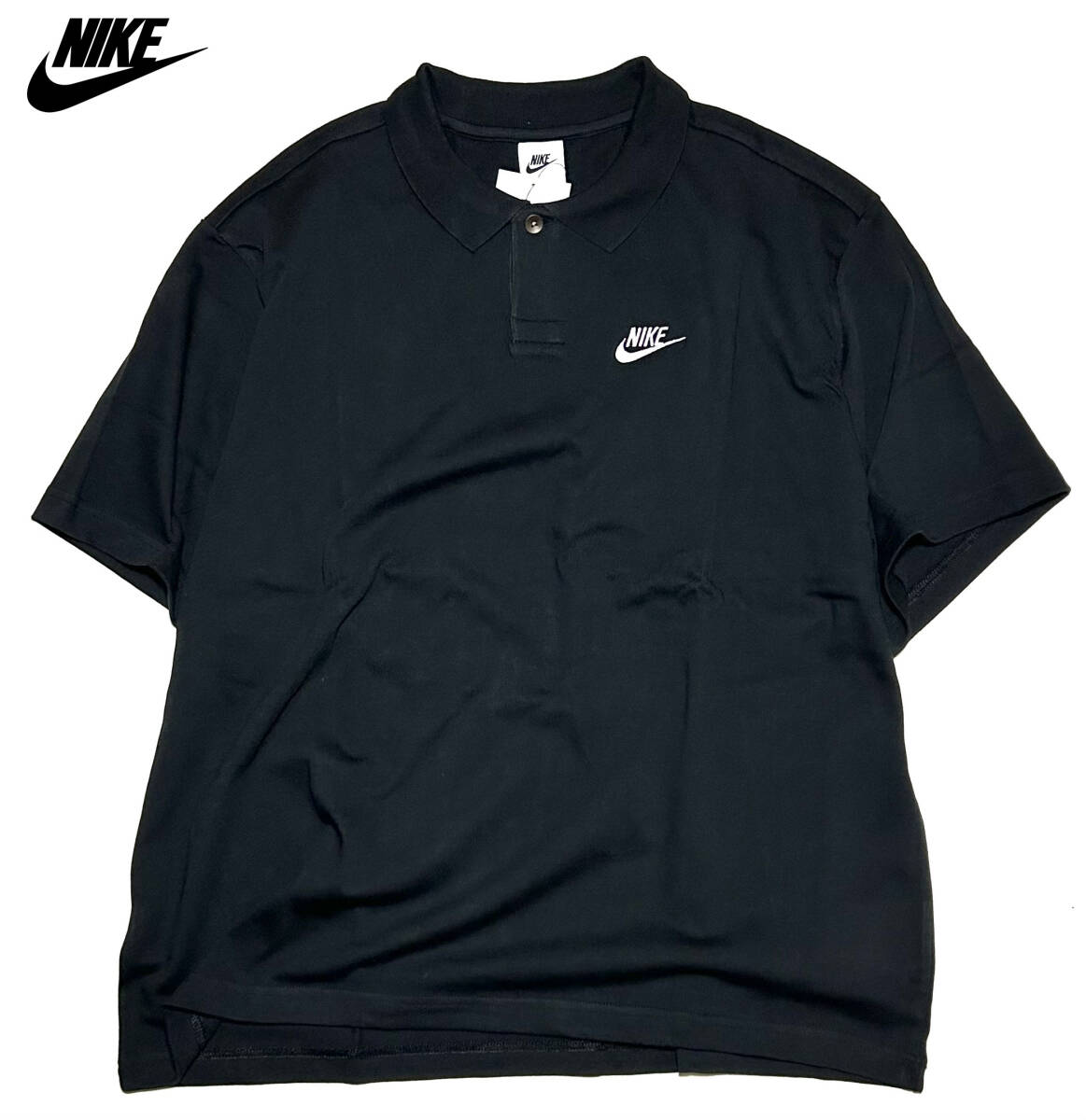 【新品】ナイキ クラブ 半袖 ポロシャツ 【010:黒】L ヘビーウェイト オーバーサイズ ワイド ルーズ フィット トレーニング NIKE NSW