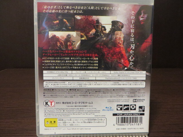 ◎PS3(プレイステーション3)『 ニンジャガイデン3(NINJA GAIDENⅢ)』【中古品/起動確認済み】