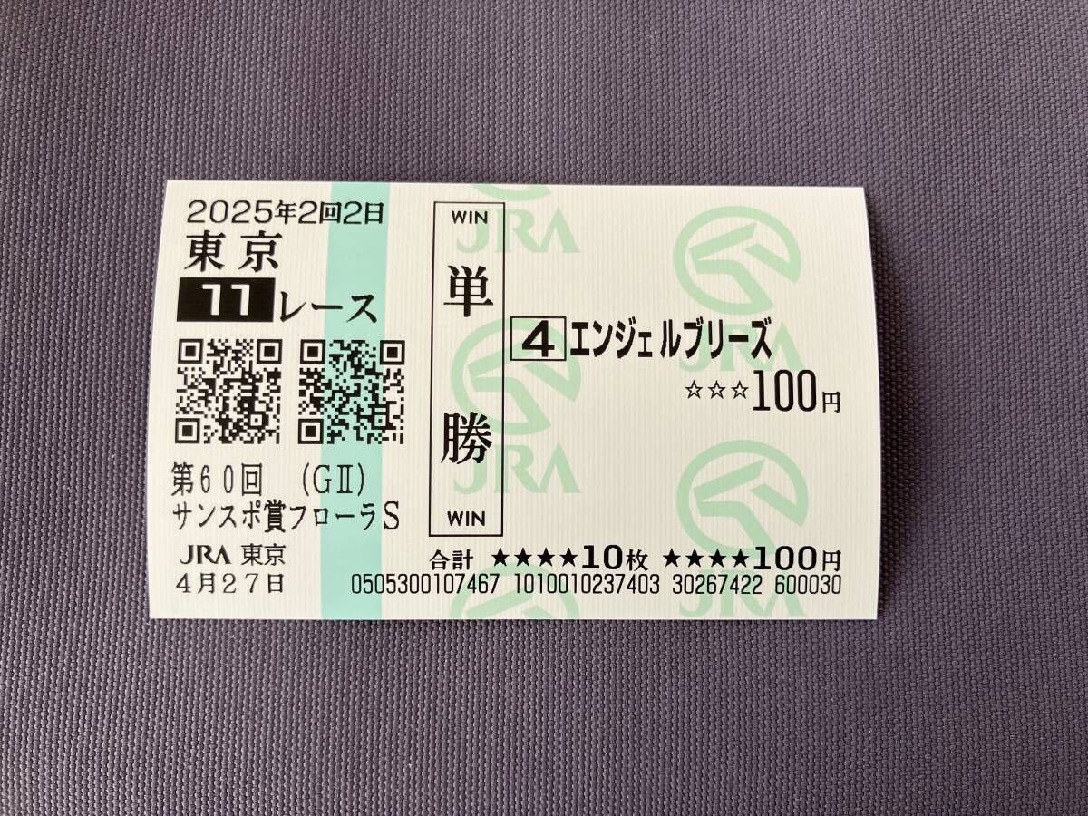 2025年度フローラステークス現地単勝馬券エンジェルブリーズ