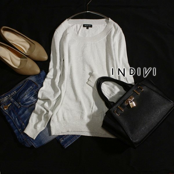 美品 INDIVI インディヴィ 綺麗め ラメ ニット プルオーバー 38号 M 春 秋 25C05