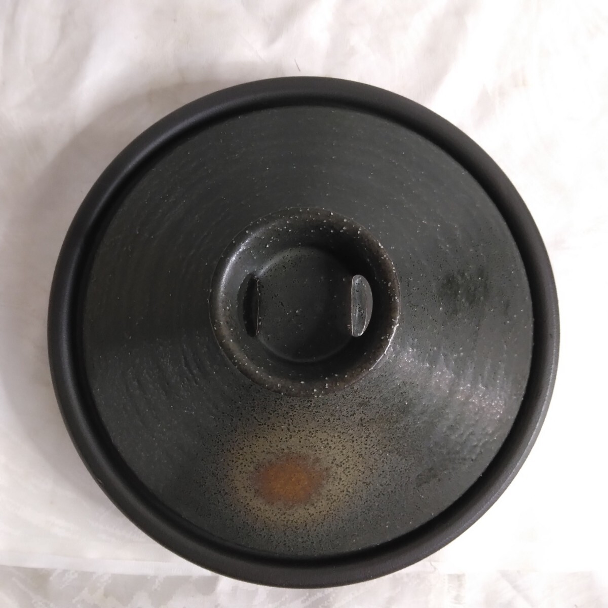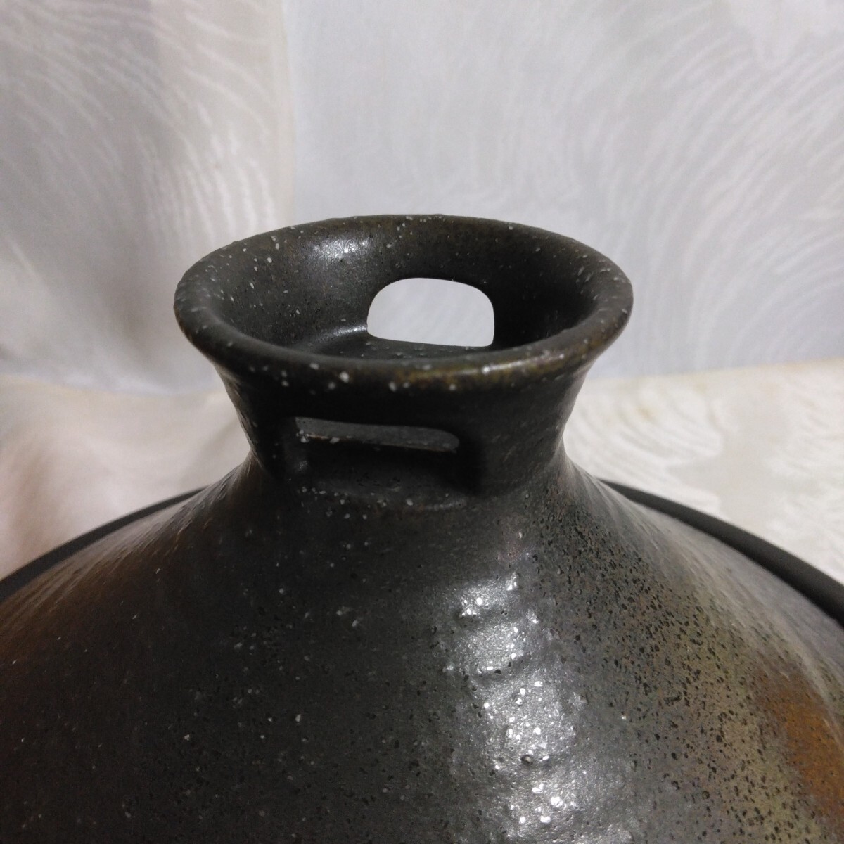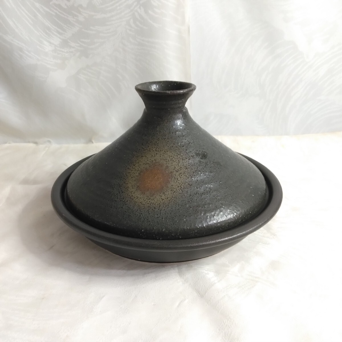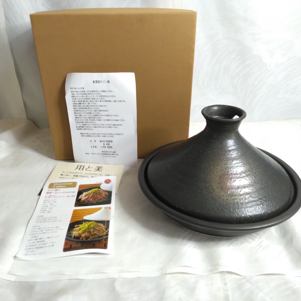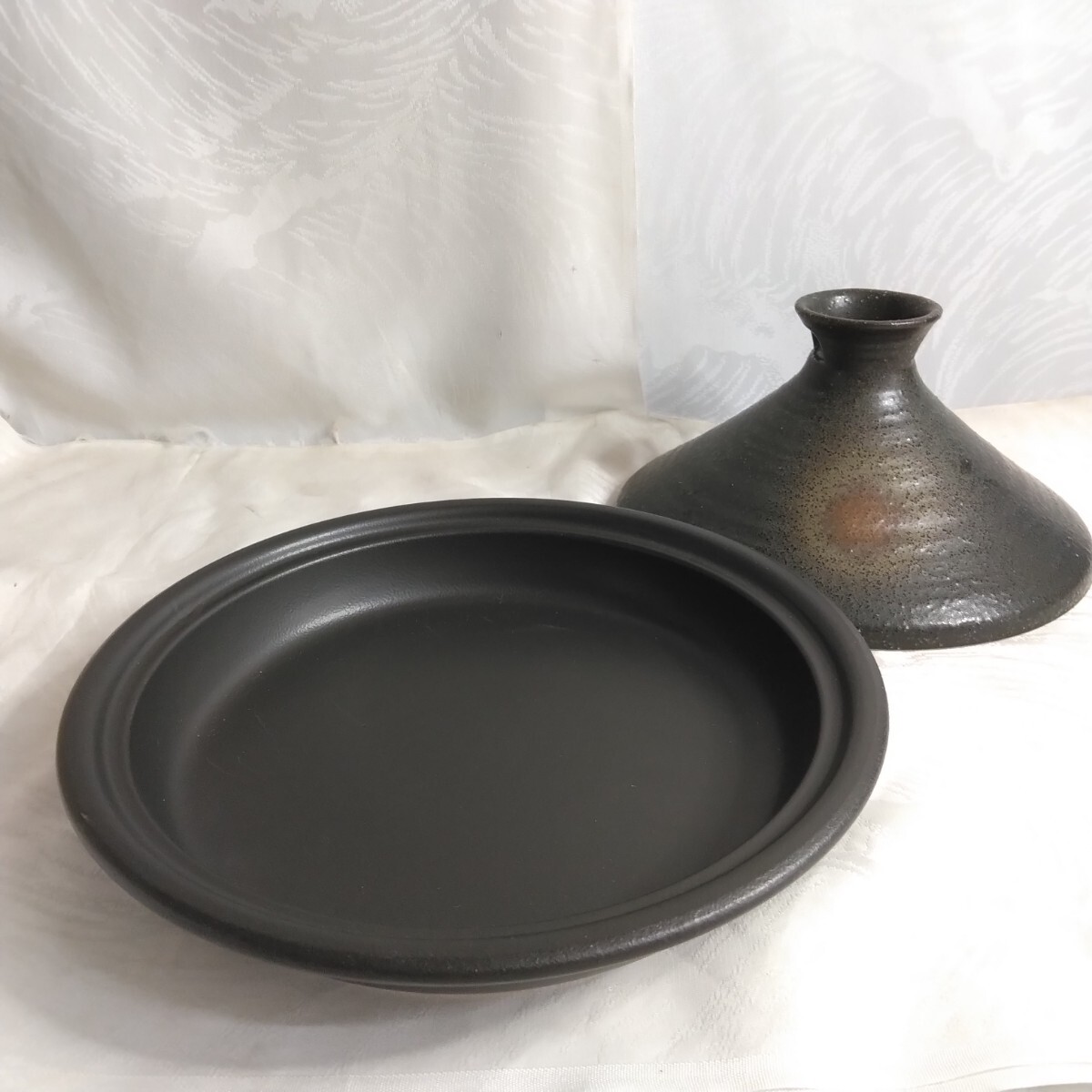 美品 タジン鍋 直径20cm 美濃焼 黒釉 大地の宴 調理器具 陶器 箱付