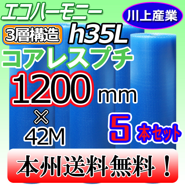 | ★ 川上産業・エコハーモニー/クリア ★ H35L/1200mm x 42m(3層構造で低価格) ★ コアレス・環境にやさしいプチプチ ★ | ||||||||||||||||||||||||