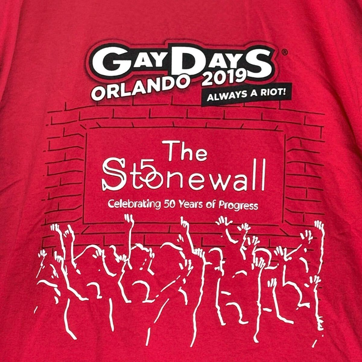 ヘインズから、2019年のゲイ・プライド月間にオーランドで開催された「Gay Days Orlando」の記念Tシャツです。「ALWAYS A RIOT!」の力強いメッセージと共に、ストーンウォールの50周年を祝うデザインが印象的。当時の熱気と連帯感が伝わってくる一枚です。ゆったりとしたサイズ感で、カジュアルながらも個性的なスタイルを演出。普段使いはもちろん、イベントなど特別なシーンにもおすすめです。この機会にぜひ、あなたのワードローブに加えてみませんか?
