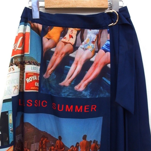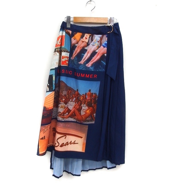 レディアゼル REDYAZEL プリント ラップスカート バックプリーツ ロング丈 F ネイビー 紺 /FT30 レディース