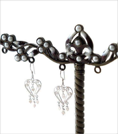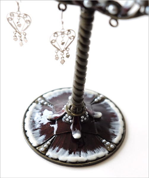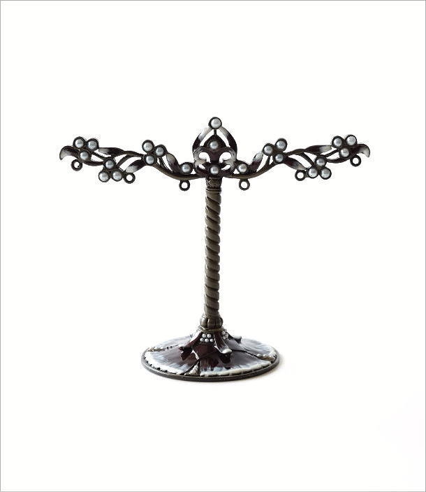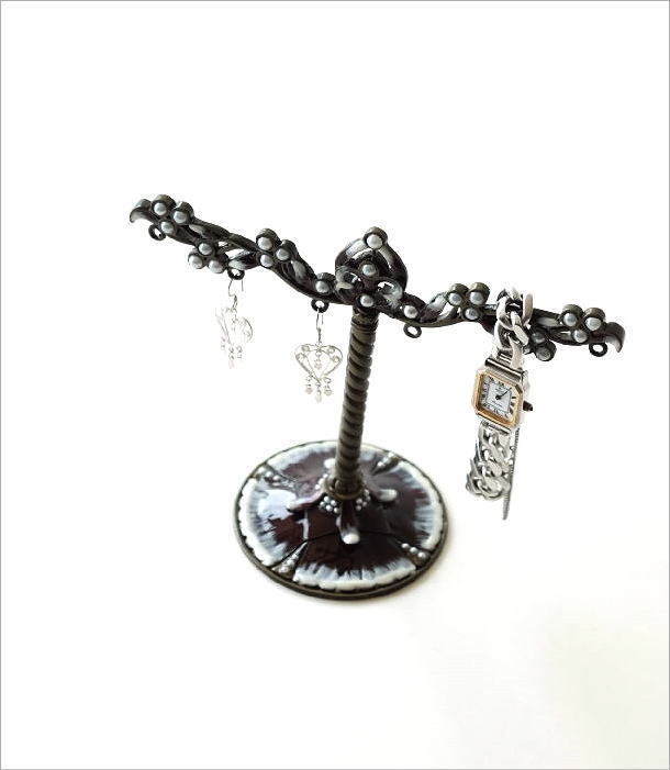 アンティークな雰囲気のスタンドに ステンドグラスのように見える シックなカラーのエナメルと 大きさの異なるパールビーズをあしらった 優美なデザインのピアススタンド 小さなリングが6個ついていて ロングなピアスも絡まずに収納出来きそうです オブジェのようなジュエリースタンドは お気に入りのアクセサリーを スタンバイさせながら飾れそう・・・。 商品名 : ルチアピアススタンド 商品番号 : abk8901 全体のサイズ(cm) : 幅16×奥行7.2×高さ13 材質 : 亜鉛合金 エナメル 重量 : 170g 生産国 : 中国 ※僅かな小傷、傾きなどはご容赦ください |
