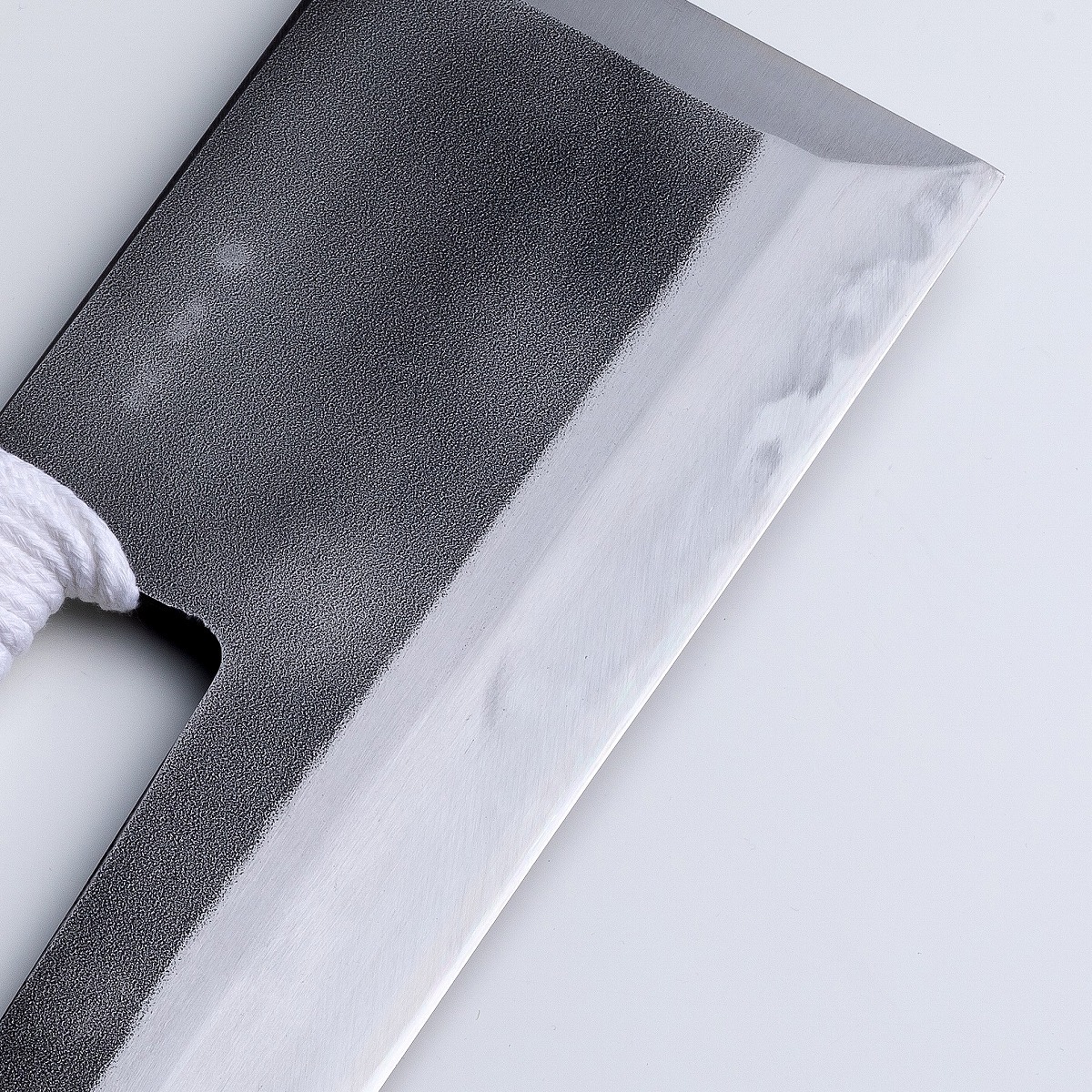 高級刃物鋼の青紙鋼を鋼に使用し、職人が本刃付した切れ味の良い麺切包丁です。
