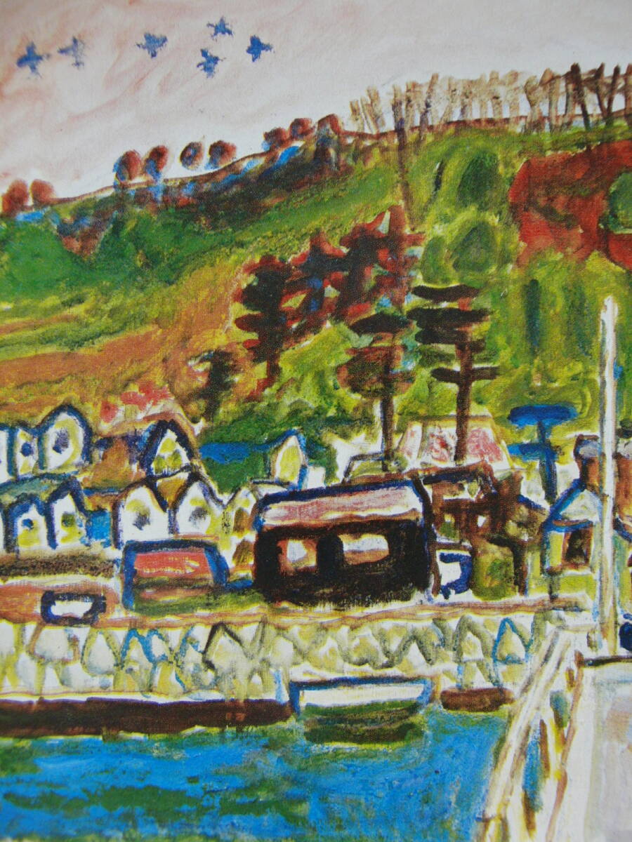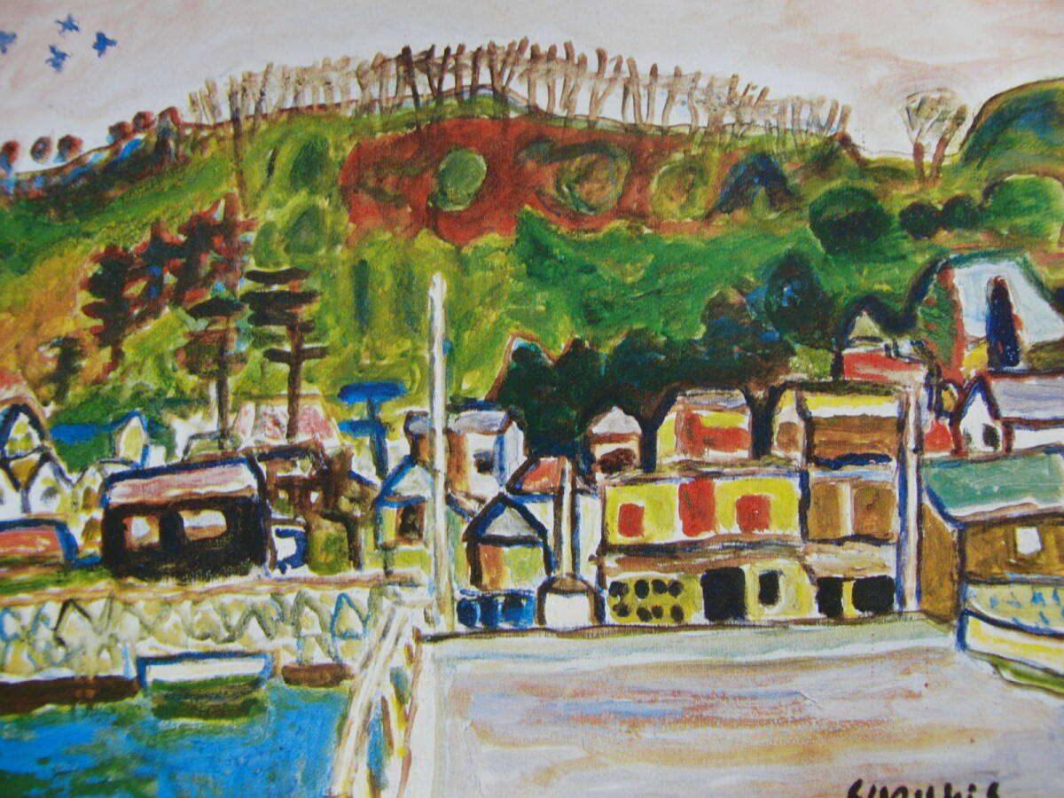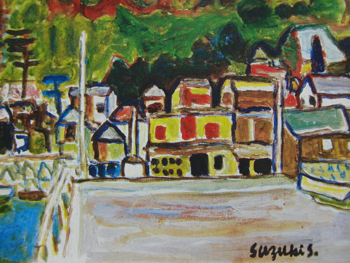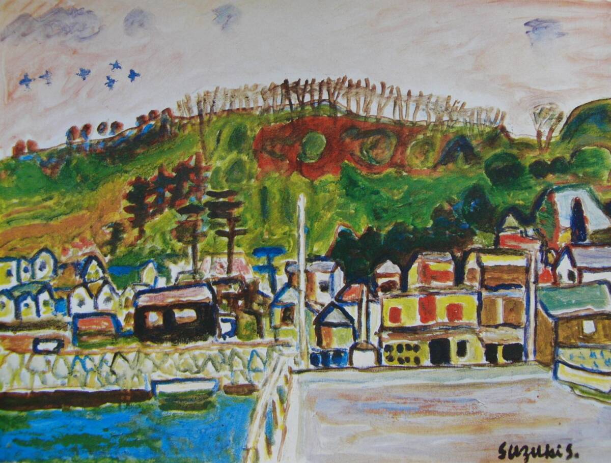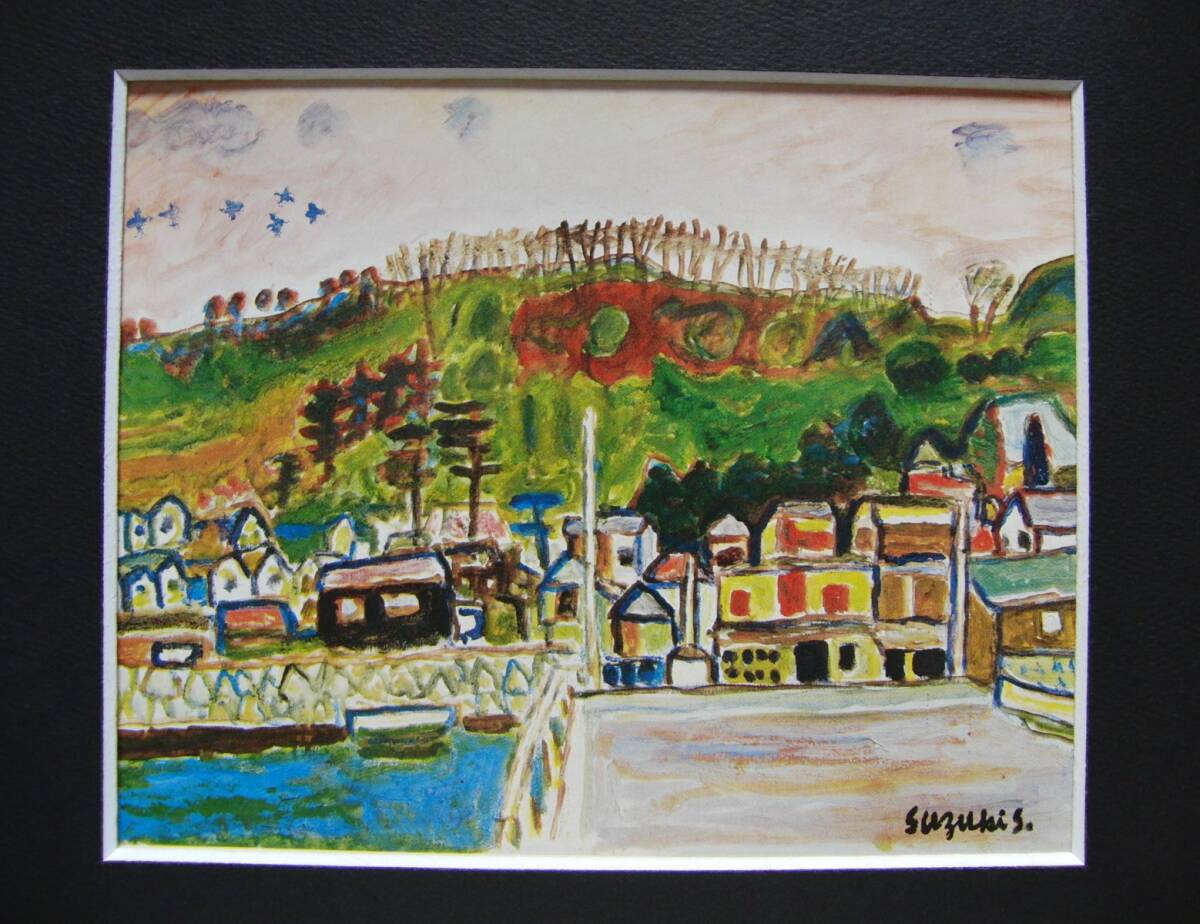 鈴木 信太郎「海辺の村」 人気作品、希少画集・額装画、日本製新品額縁、状態良好、送料無料