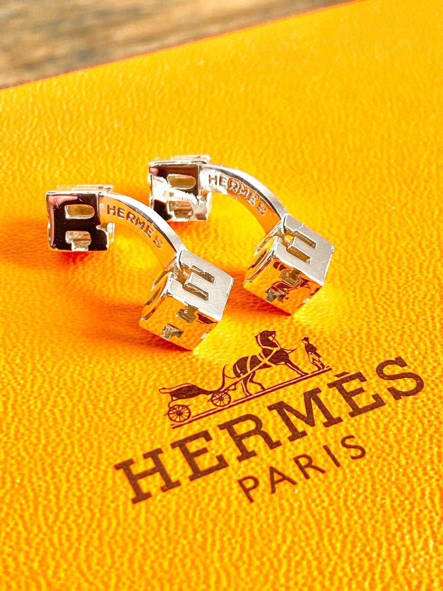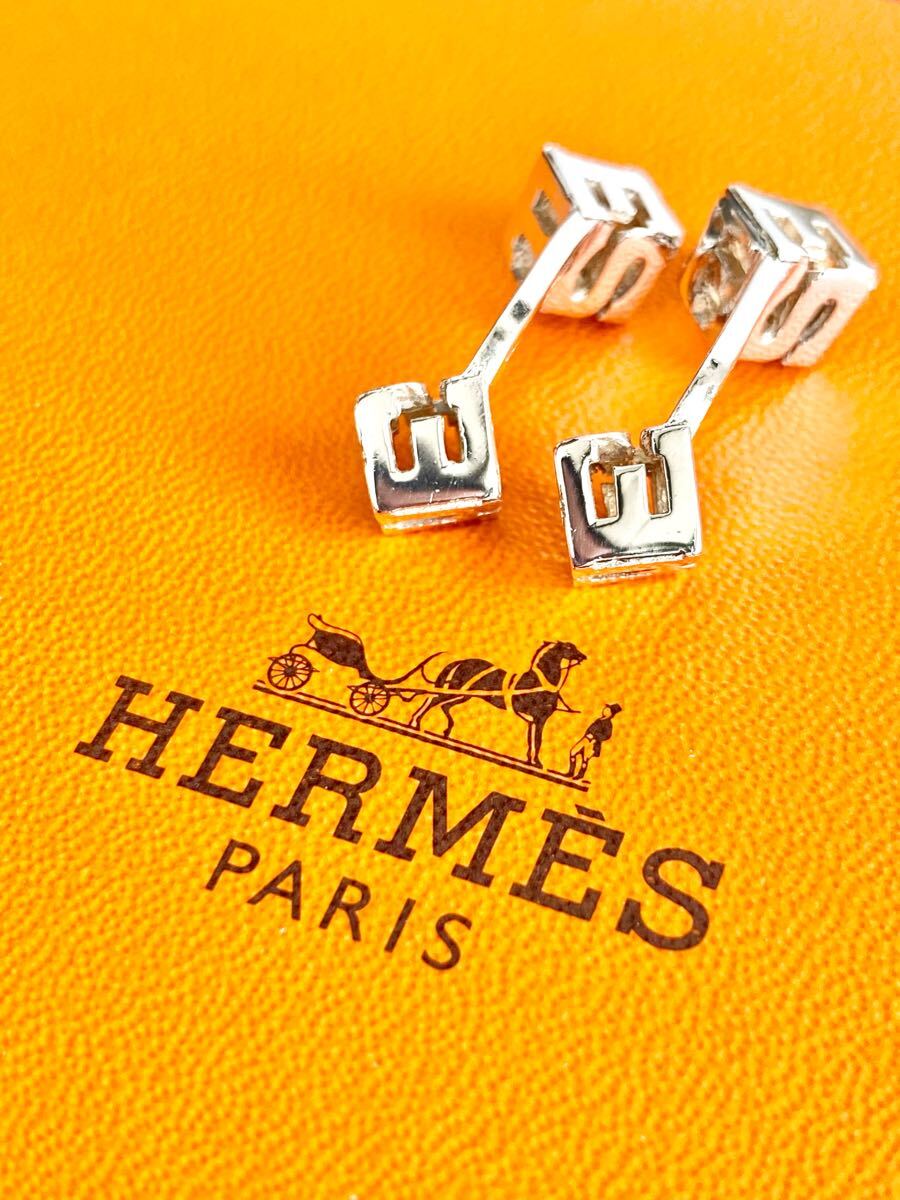☆希少美品☆ 鏡面磨き仕上げ HERMES エルメス ヴィンテージ キューブ Herms ロゴ シルバー カフリンクス カフス Ag925 送料無料 レア