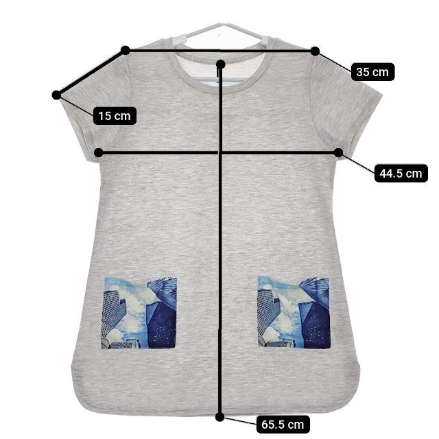 | 実寸サイズ | 肩幅:約35cm 着丈:約65.5cm 身幅:約44.5cm 袖丈:約15cm ※記載以外のサイズが合わないことを理由とした返品はできませんので、 記載部分以外で実寸サイズの気になる箇所があれば必ず購入前にご質問ください。 |