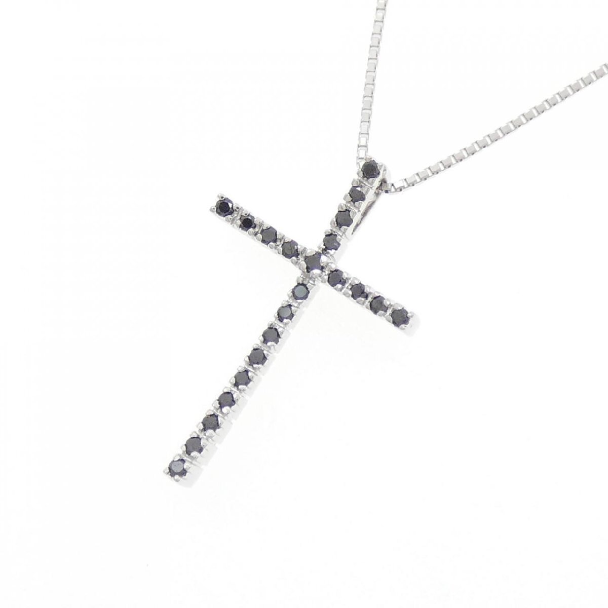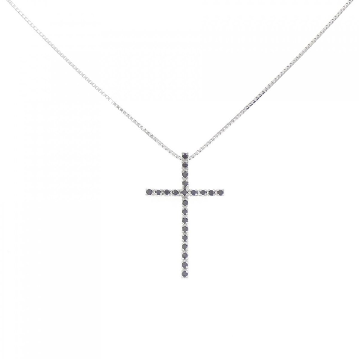 ブラックダイヤモンドがあしらわれたクロスモチーフのネックレス。カジュアルな装いにもピッタリです。