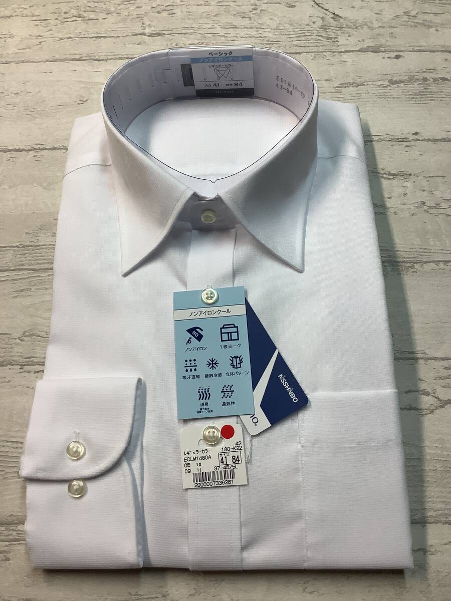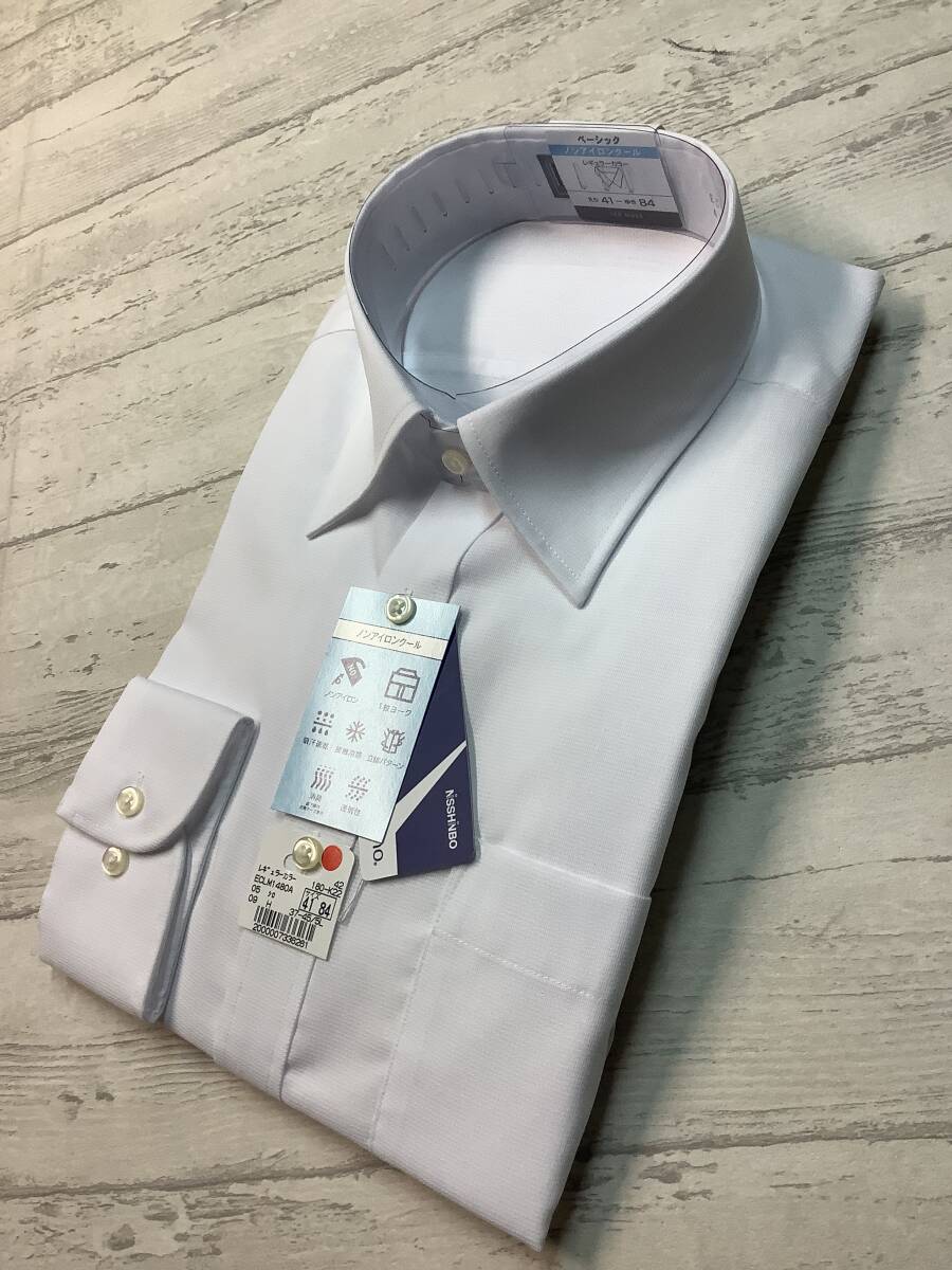 新品未使用 41-84 長袖 ★白レギュラーカラードレスシャツ ビジネス ★ノンアイロンクール