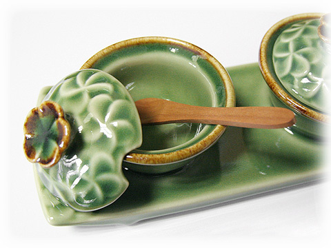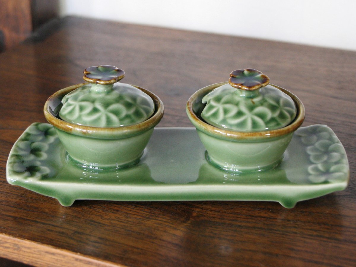 Jenggala Frangipani Salt & Pepper Dish ジェンガラ社製品番号:R-1526-147-CLmryg0001 サイズ:4.5cm(高さ-ふたを除く) x 19cm(横幅) カラー:Green w/Brown Rim ※画像のスプーンは付属しません。 フランジパニの花がセンス良くデザインされたソルト&ペッパー(調味料)入れ。花柄のふたがとてもキュート。 通常価格:¥2904税込 製品の状態:フタに凸と釉薬(うわぐすり)の跳ね、本体に歪みや釉薬(うわぐすり)のムラがある。 アウトレット価格:¥1452税込(50%OFF) ※この商品は正規ジェンガラ取扱店「月下香」および【パラドックス ヤフオク!店】が販売しております。 |