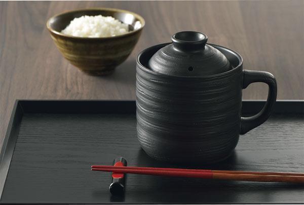送料無料 炊飯器 レンジ用 電子レンジ専用炊飯陶器 楽炊御膳 1合炊き T-01 黒色x2個セット/卸