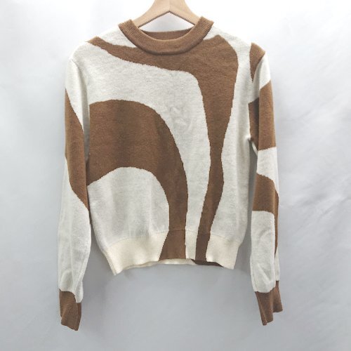 ◇ ⊇ Ray BEAMS レイ ビームス 総柄 長袖 ニット サイズF ブラウン レディース E