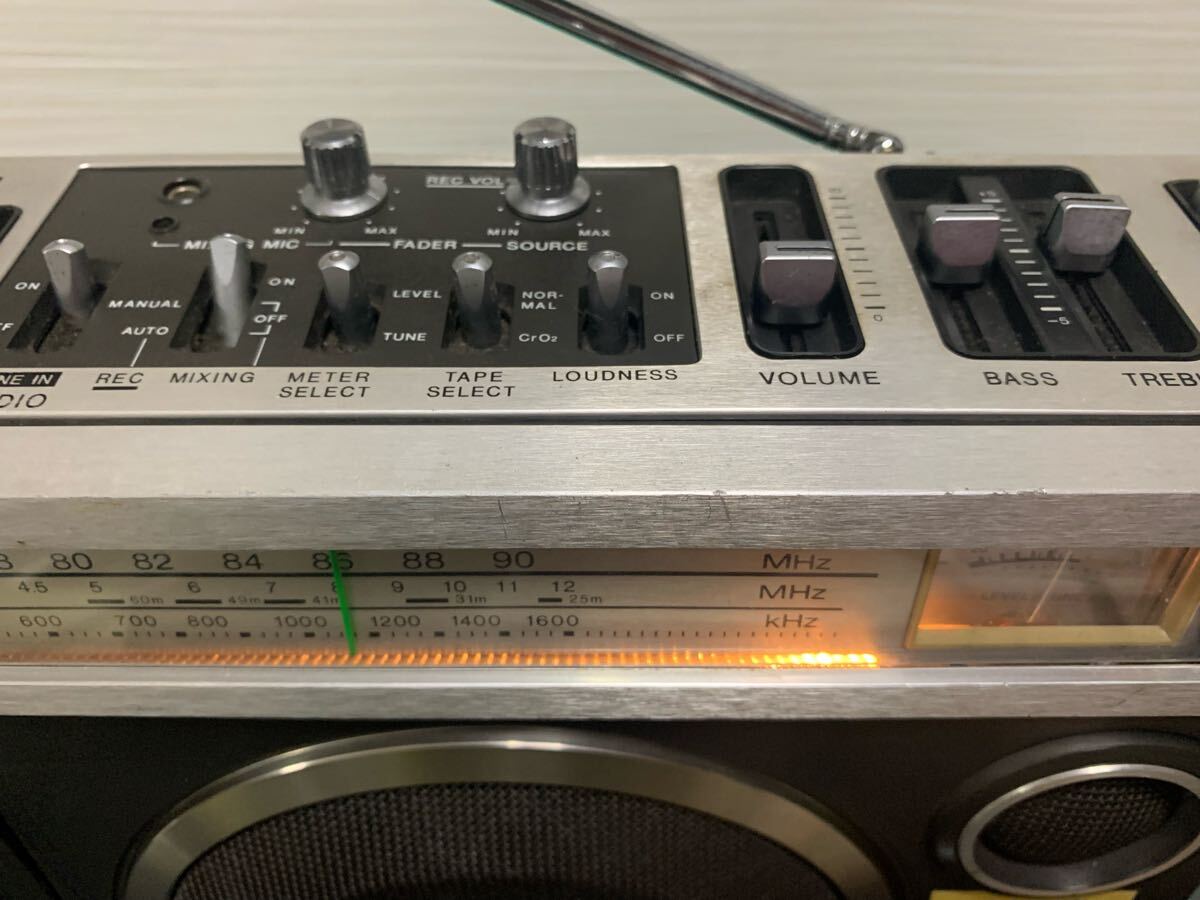 ラジオを録音、再生、早送り、巻き戻し等、しっかり正常作動です。 テープ/ラジオ切り替えスイッチを接点復活剤で改善。