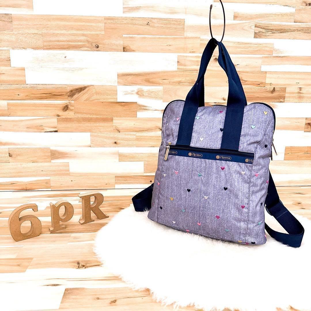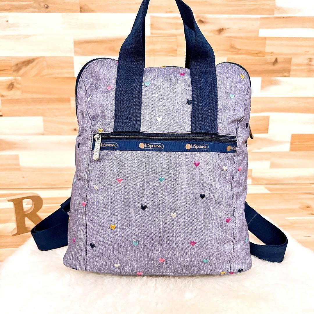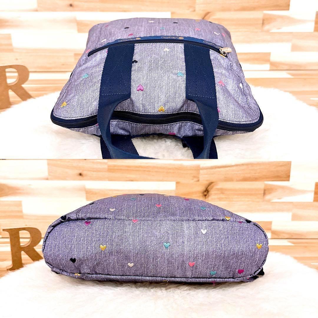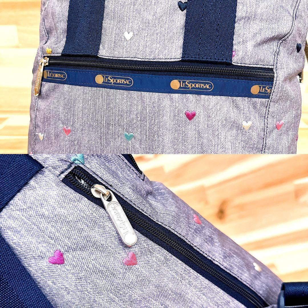 落ち着いたグレー×ネイビーカラーに散りばめられた刺繍のハートデザインがとっても可愛いLeSportsacのトートバッグです。バッグを開けなくても背部のファスナーから中身を取り出せる便利なつくりのアイテムです。