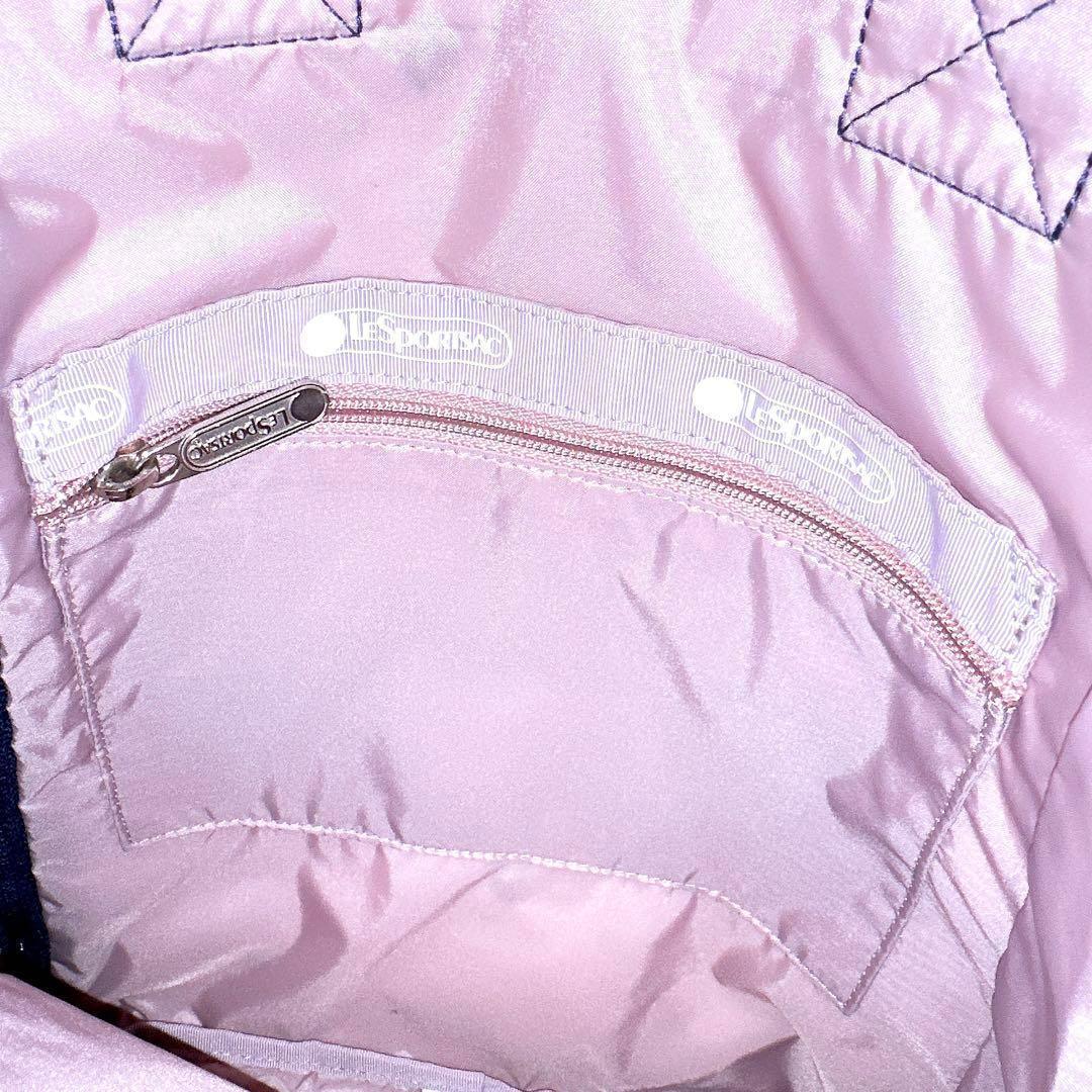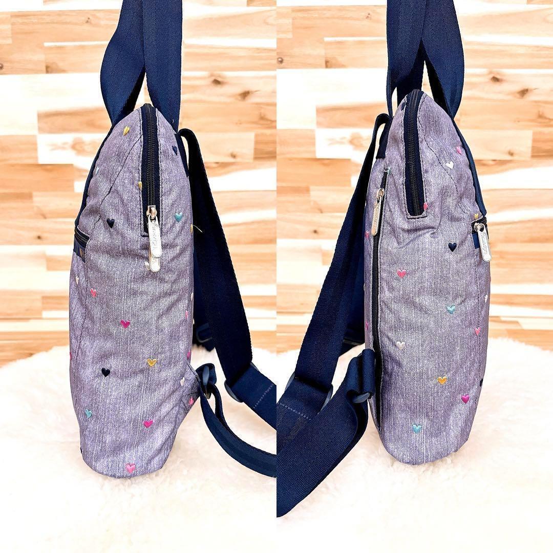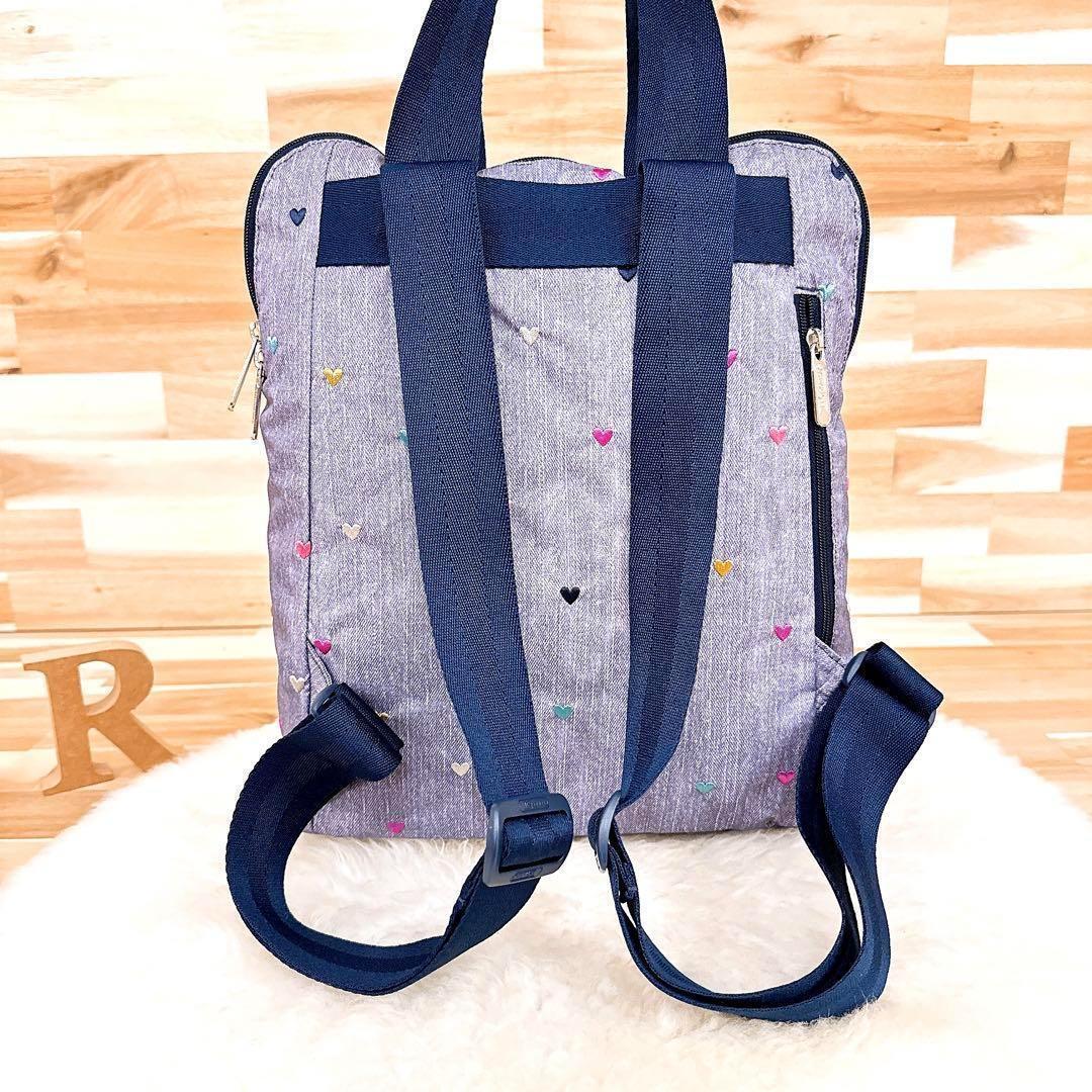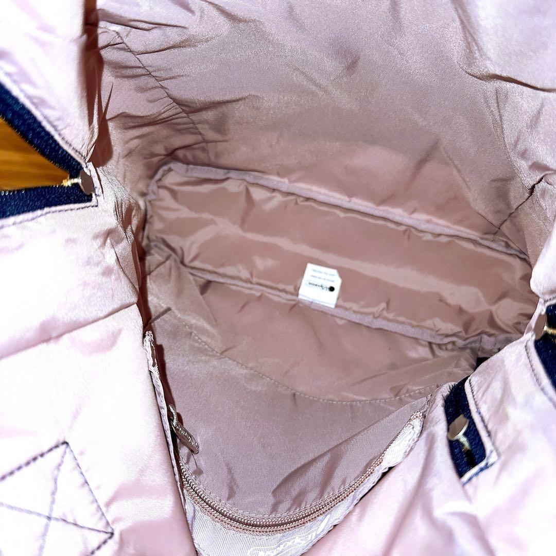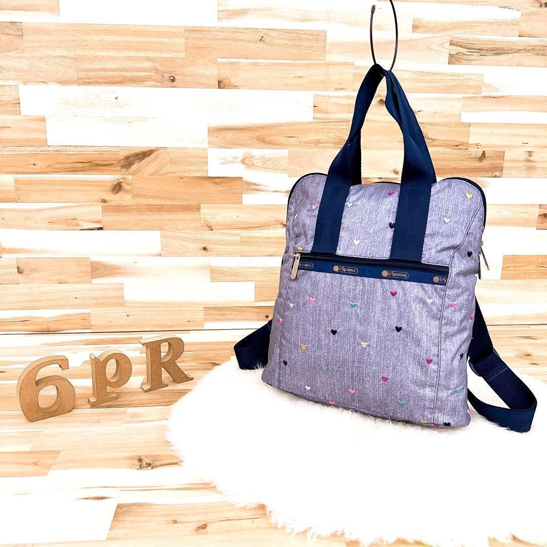 落ち着いたグレー×ネイビーカラーに散りばめられた刺繍のハートデザインがとっても可愛いLeSportsacのトートバッグです。バッグを開けなくても背部のファスナーから中身を取り出せる便利なつくりのアイテムです。