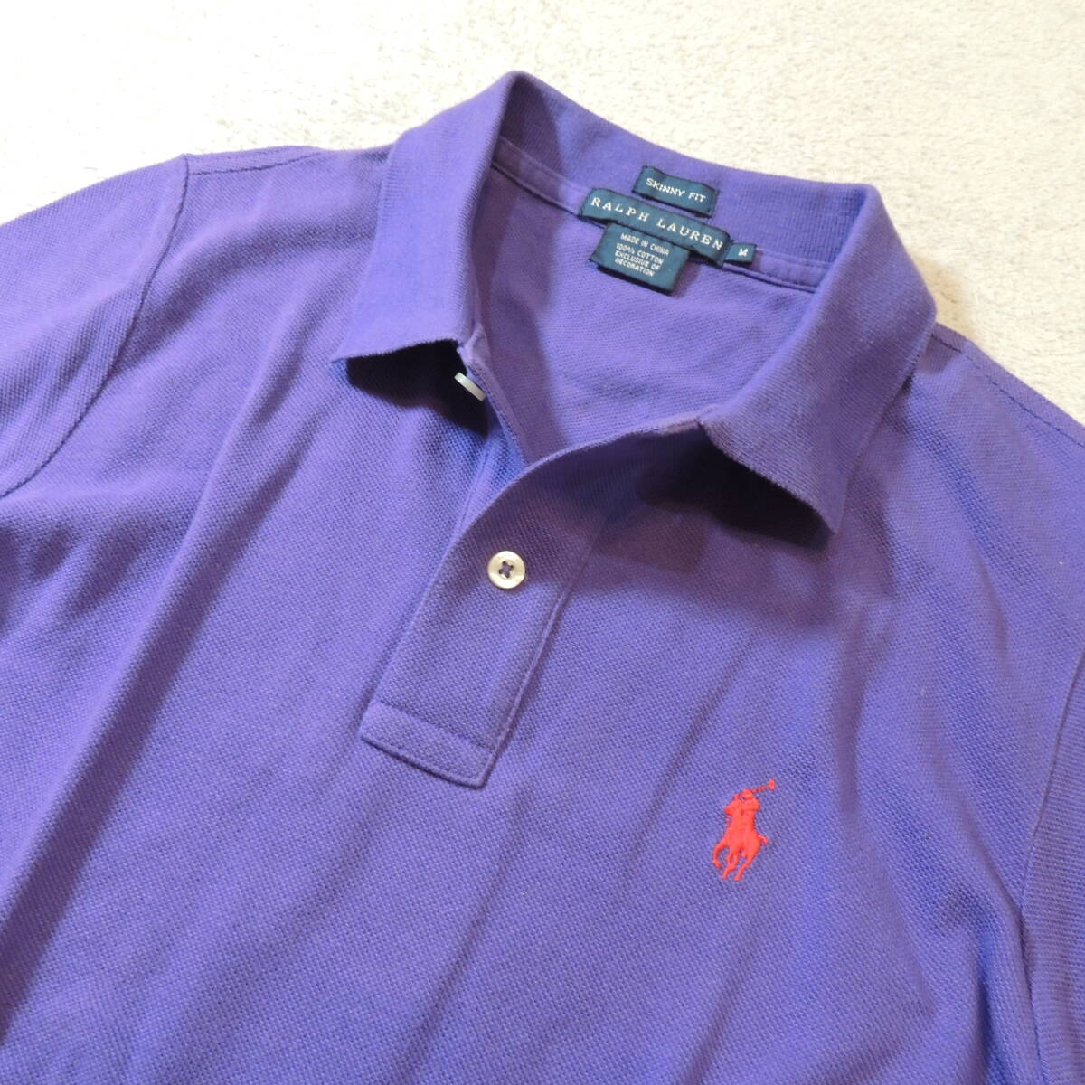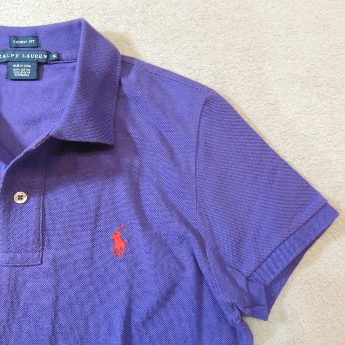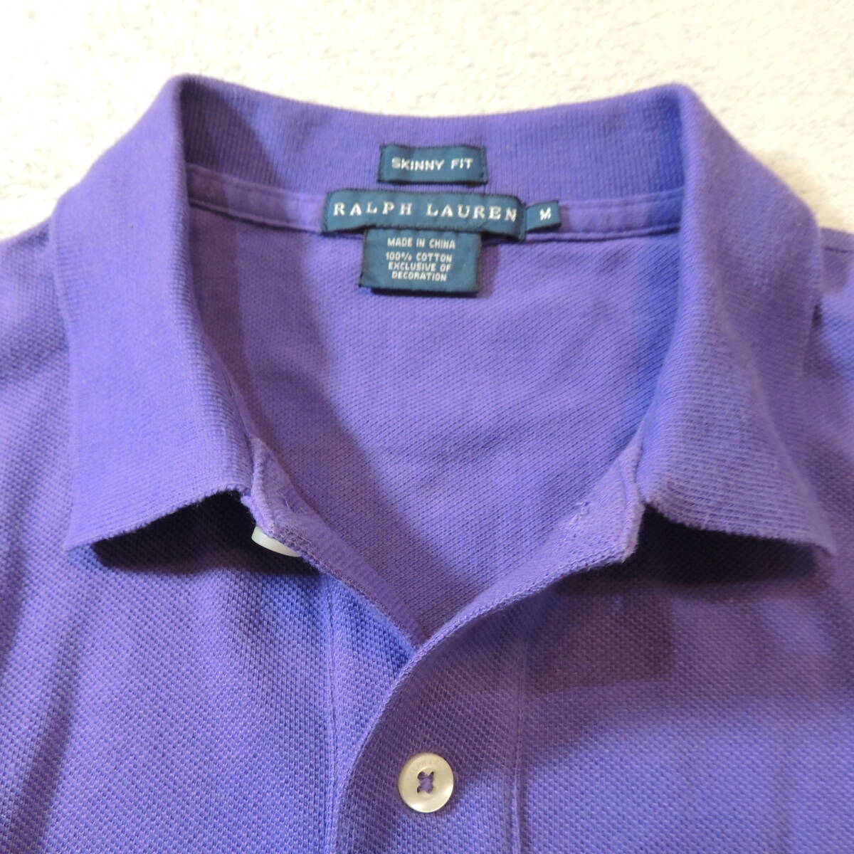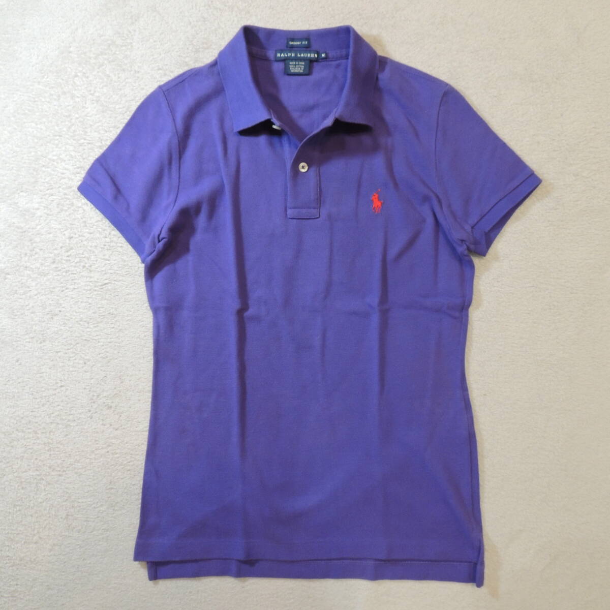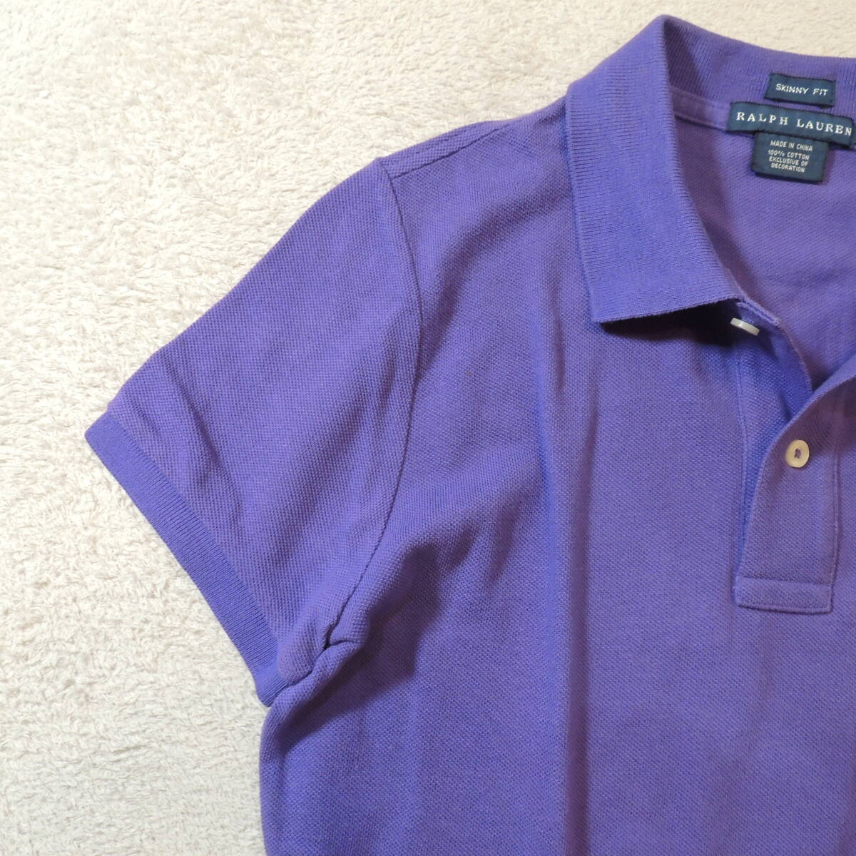 RALPH LAUREN ラルフローレン 胸刺繍ロゴ 鹿の子ポロシャツ カノコ パープル 紫 JPレディースL 状態良