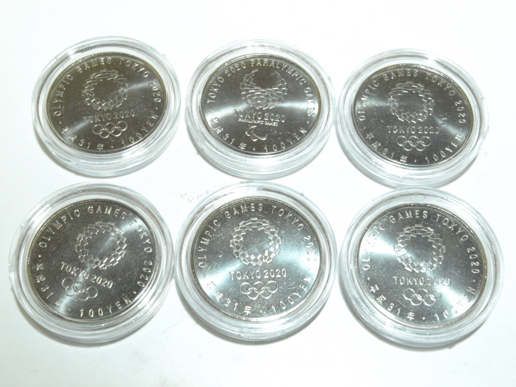2020年東京オリンピック・パラリンピック競技大会記念貨幣・百円クラッド貨幣6種類 ケース入り(サーフィン、ゴールボール他) 第二次発行分