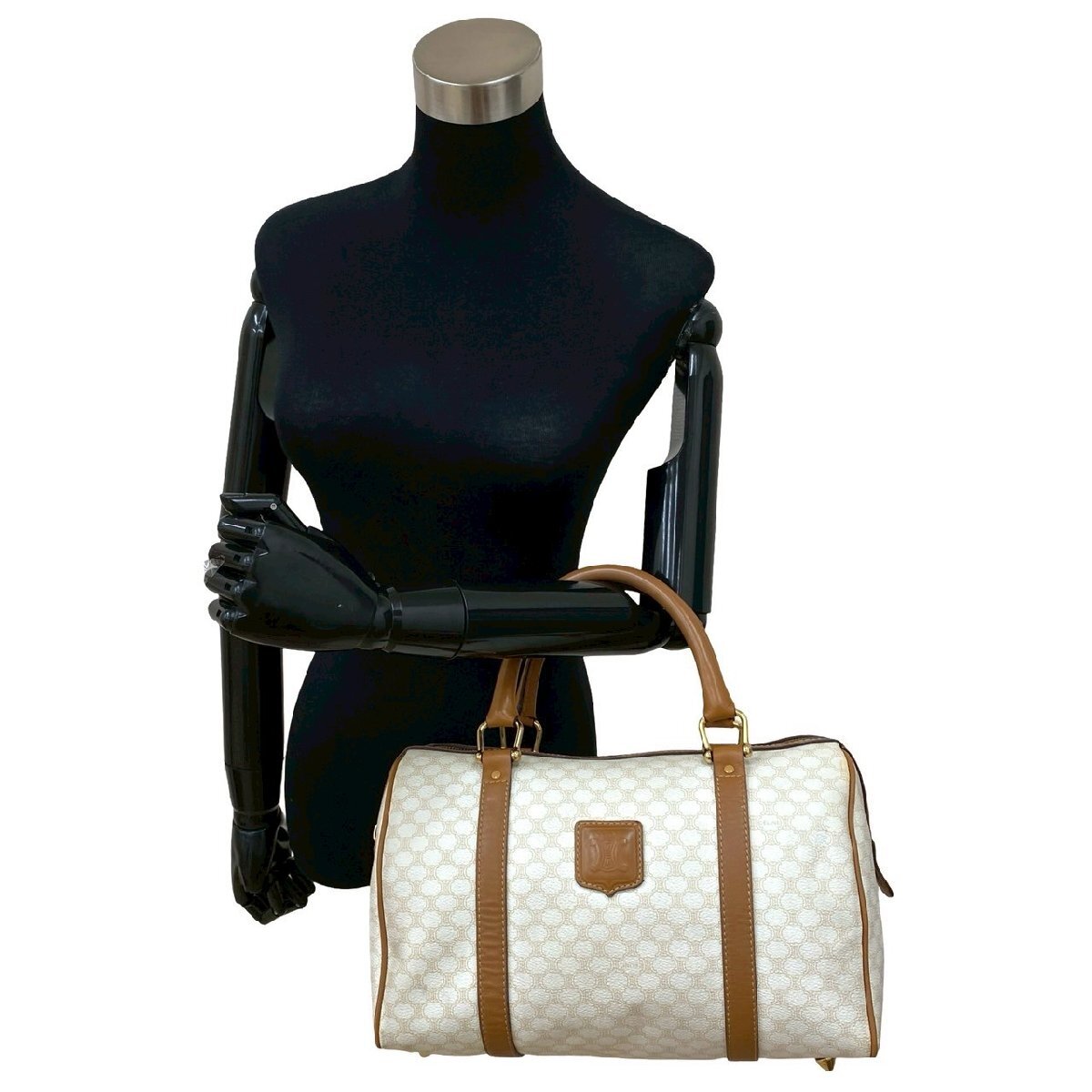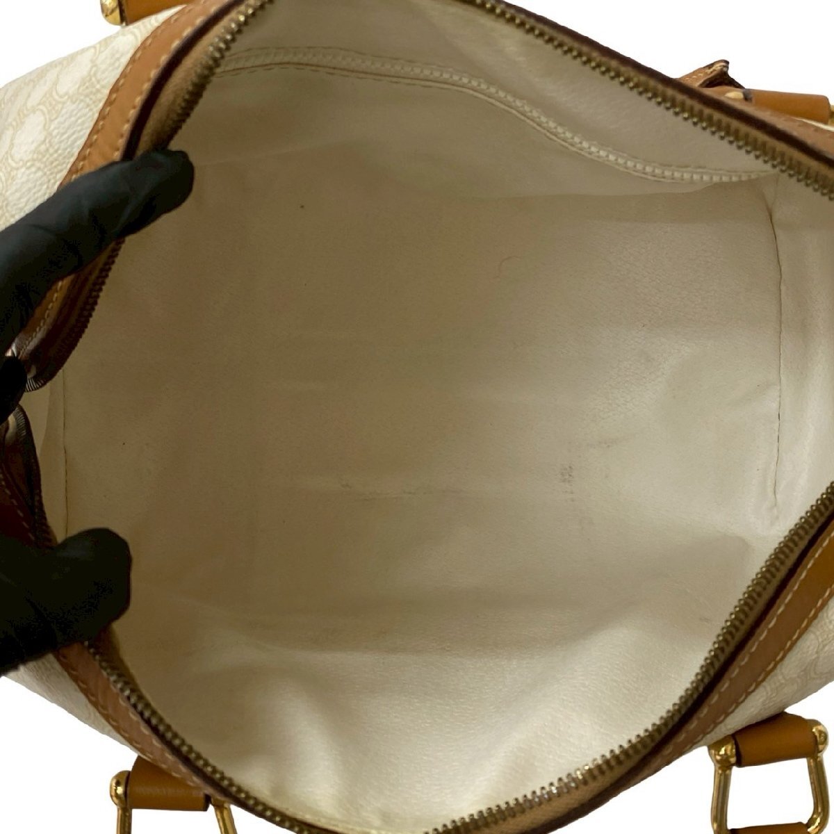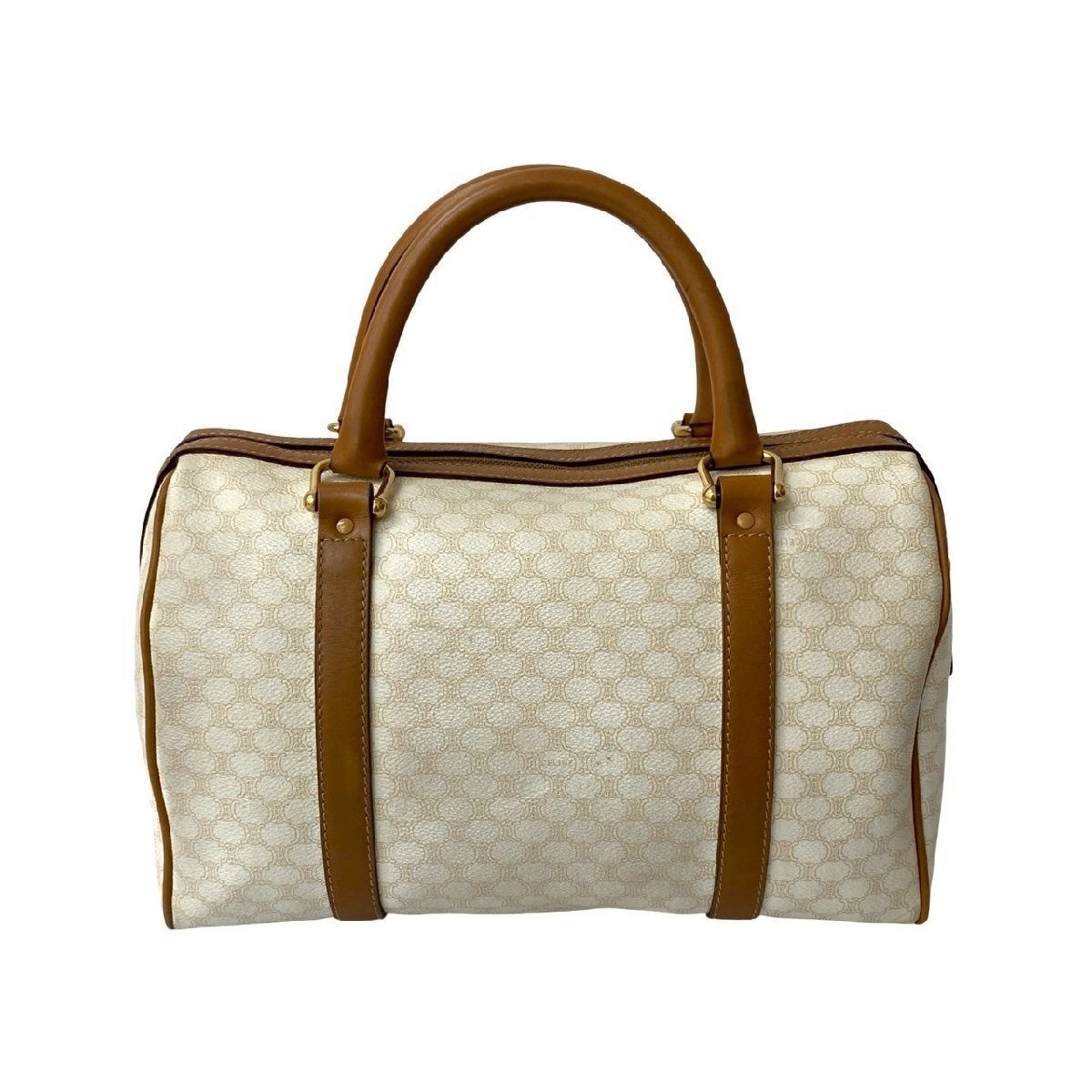 極 美品 CELINE セリーヌ ヴィンテージ マカダム ブラゾン トリオンフ 柄 レザー ハンドバッグ ミニ ボストンバッグ ホワイト 19249