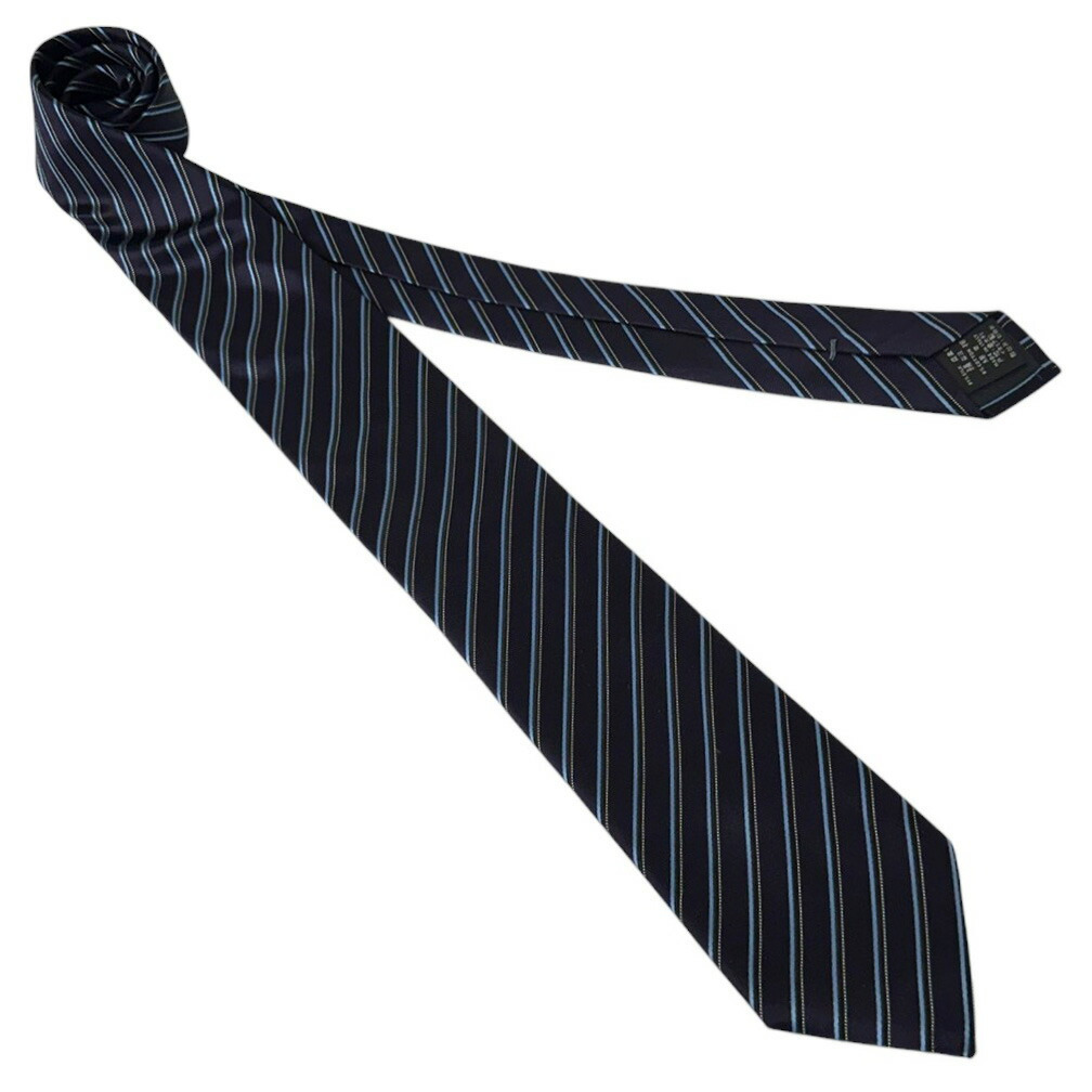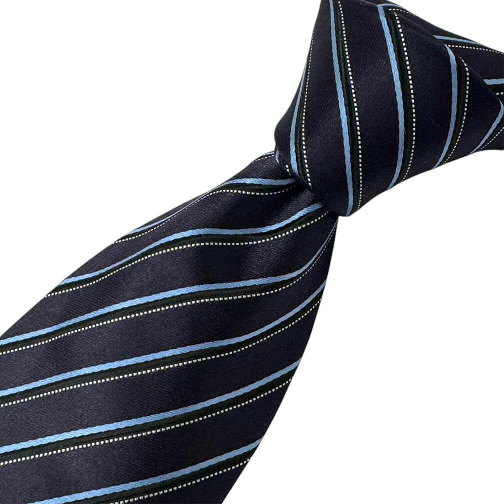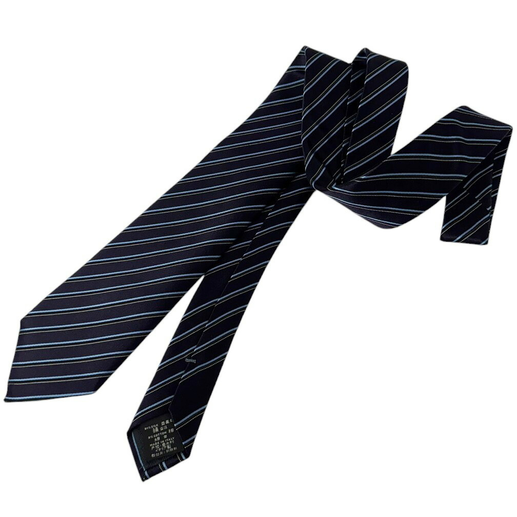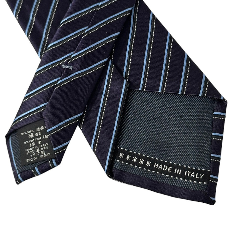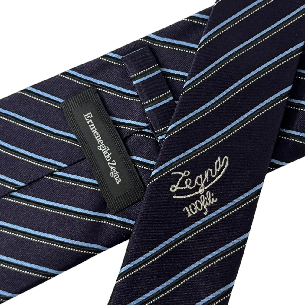 未使用 ゼニア ブランド ネクタイ エルメネジルド・ゼニア 高級 シルク コットン ストライプ ステッチ ネイビー ブルー